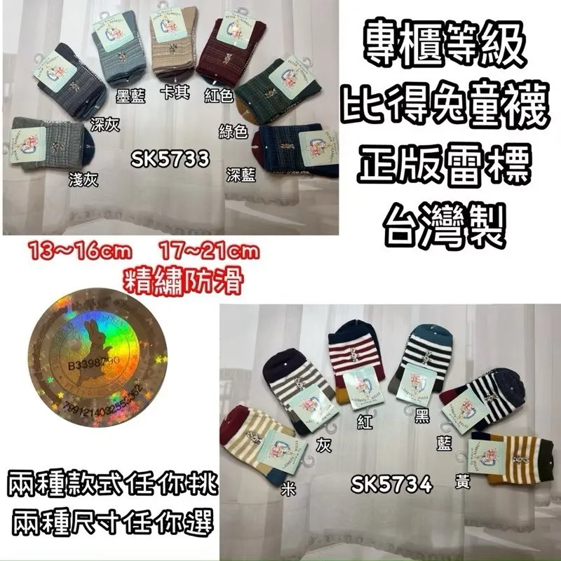 #現貨#百貨專櫃#比得兔#實用#襪子#男孩#童襪#精繡防滑#可挑色