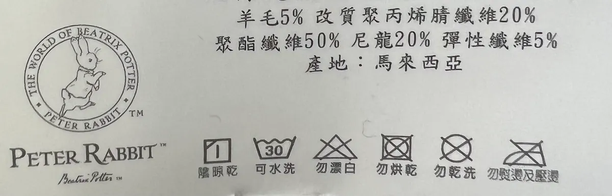 成分:羊毛5%改質聚丙烯腈纖維20%聚酯纖維50%尼龍20%彈性纖維5%