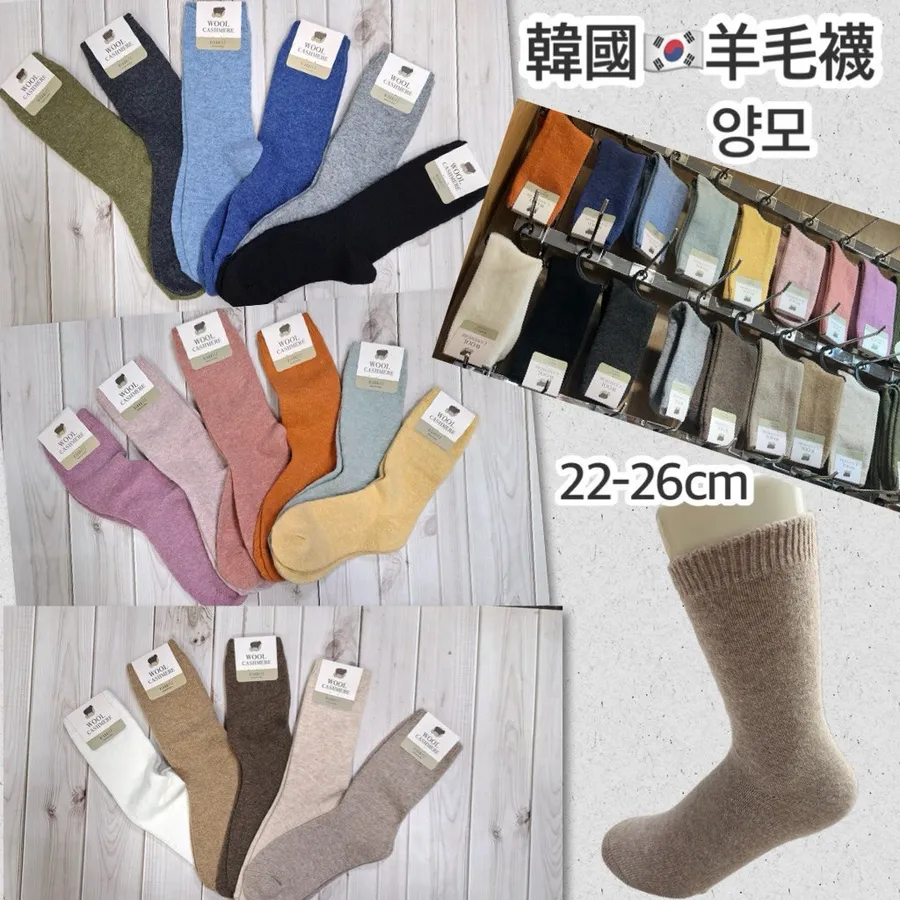 韓國製保暖羊毛襪 #素色#羊毛#中筒襪#長襪#22-26cm