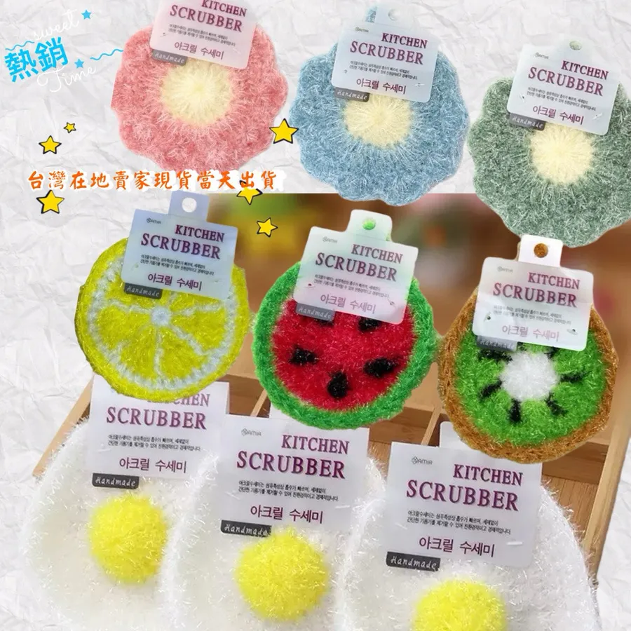 韓國洗碗菜瓜布 西瓜/檸檬/奇異果/花花菜瓜布 #可愛水果造型 #韓國壓克力 #不傷廚具
