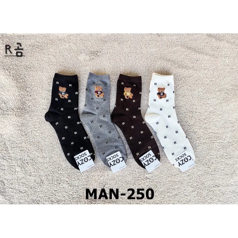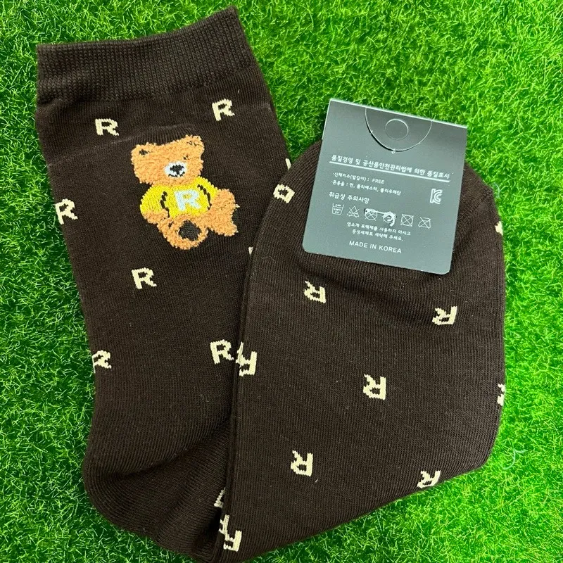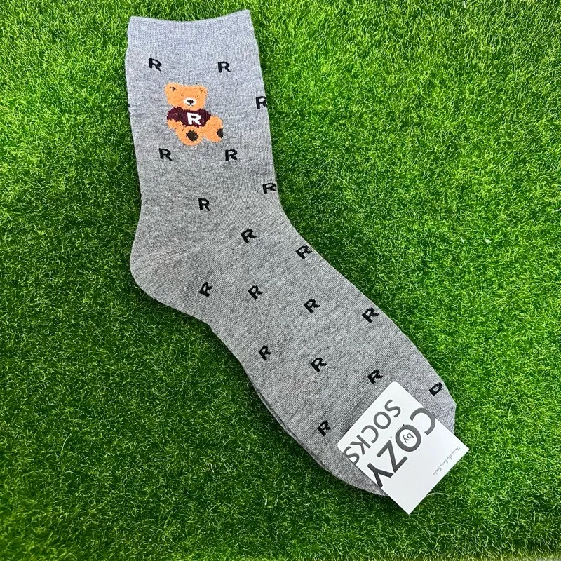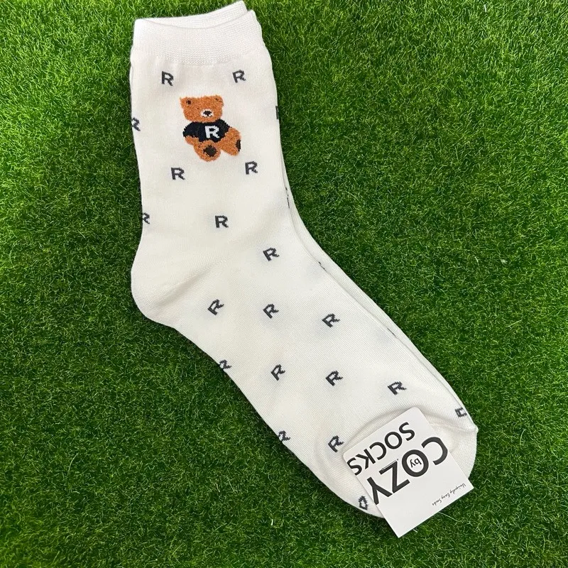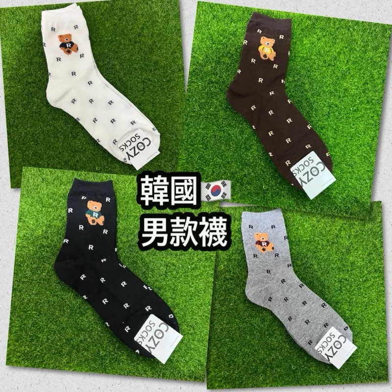 韓國製 小熊字母R卡通棉襪 #22-26cm #男襪 #長襪