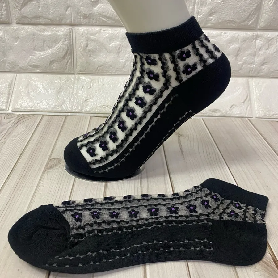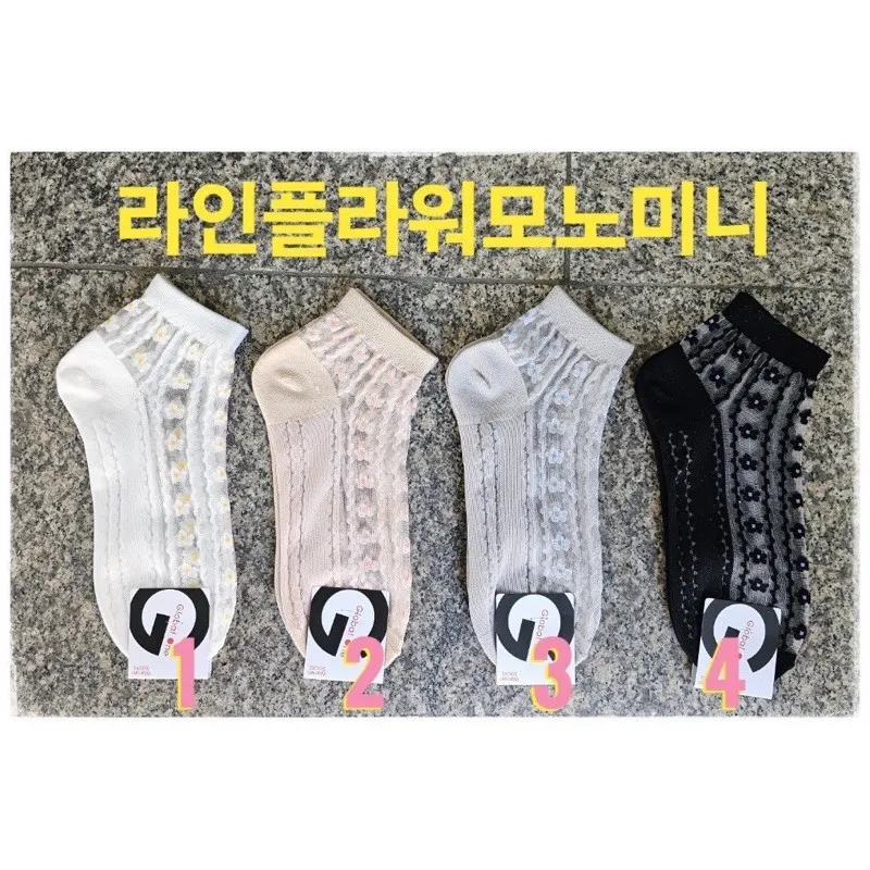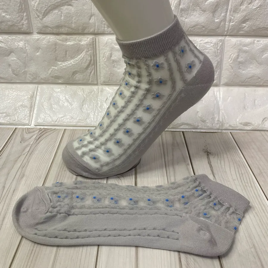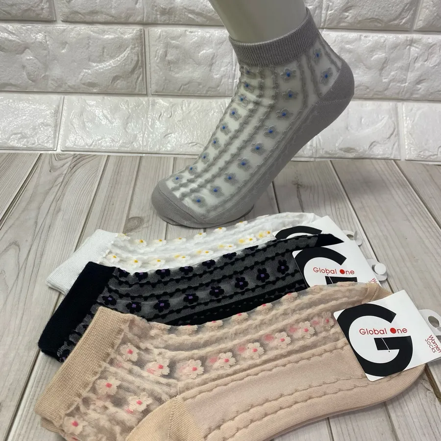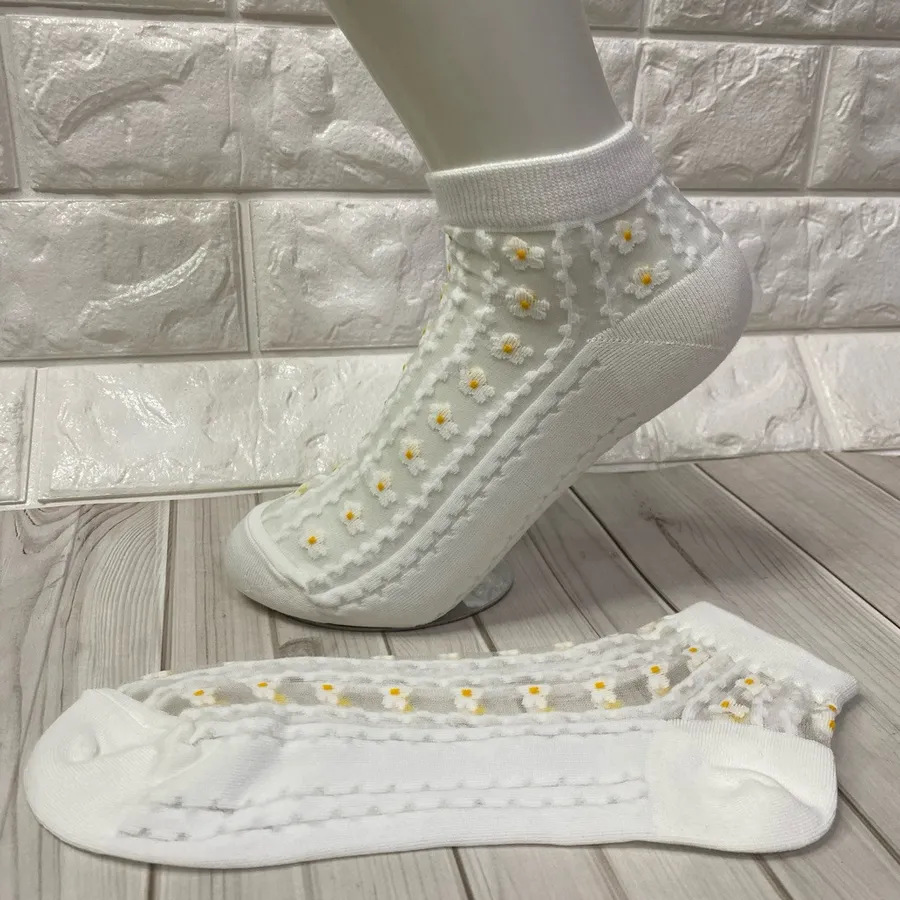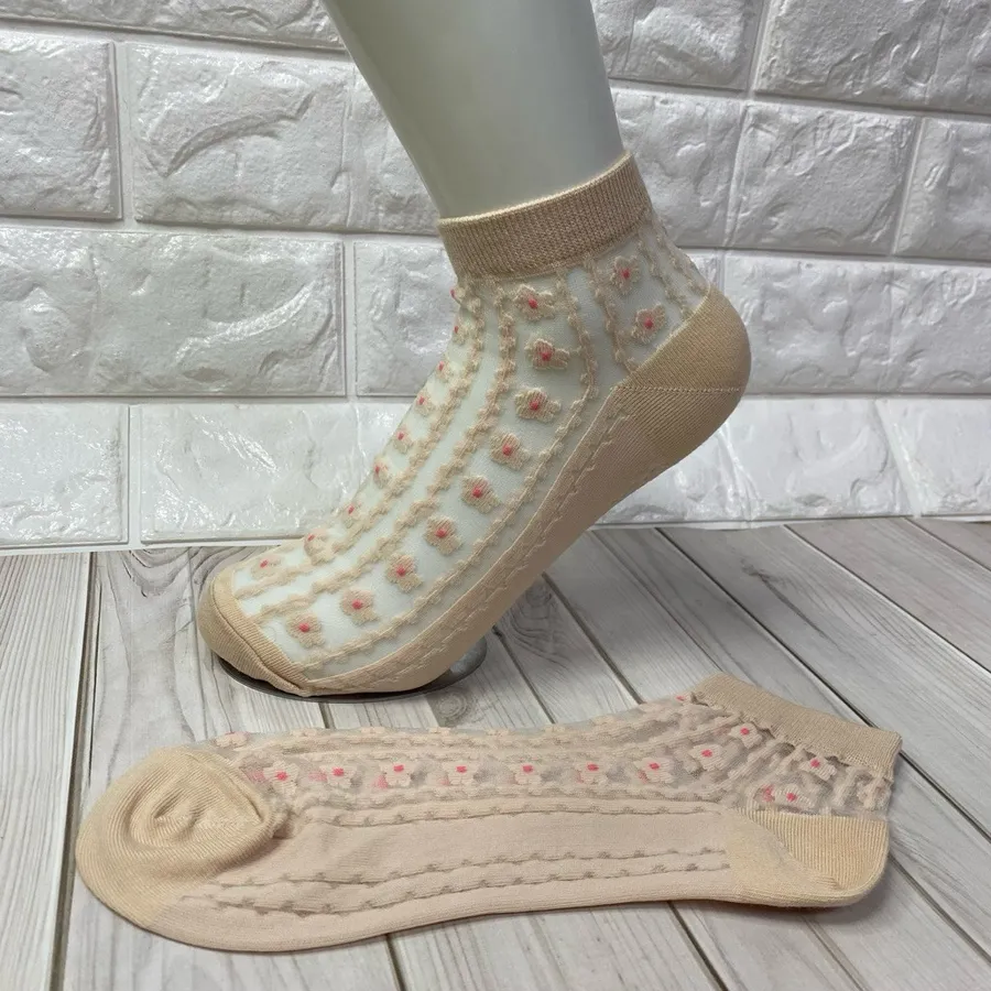 韓國製新款花朵短筒紗網襪 #23-25cm#精梳棉襪底 #玻璃襪 #鏤空襪 #薄款透氣 #米簡約風 #花花