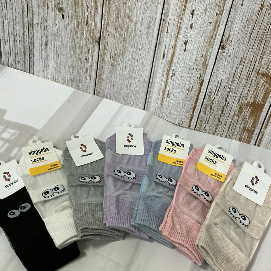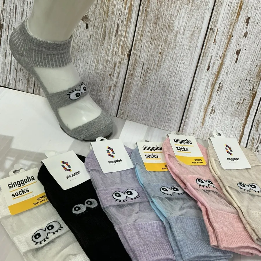 韓國製 春夏新款可愛眼睛 薄款網紗短筒襪 #22cm~26cm