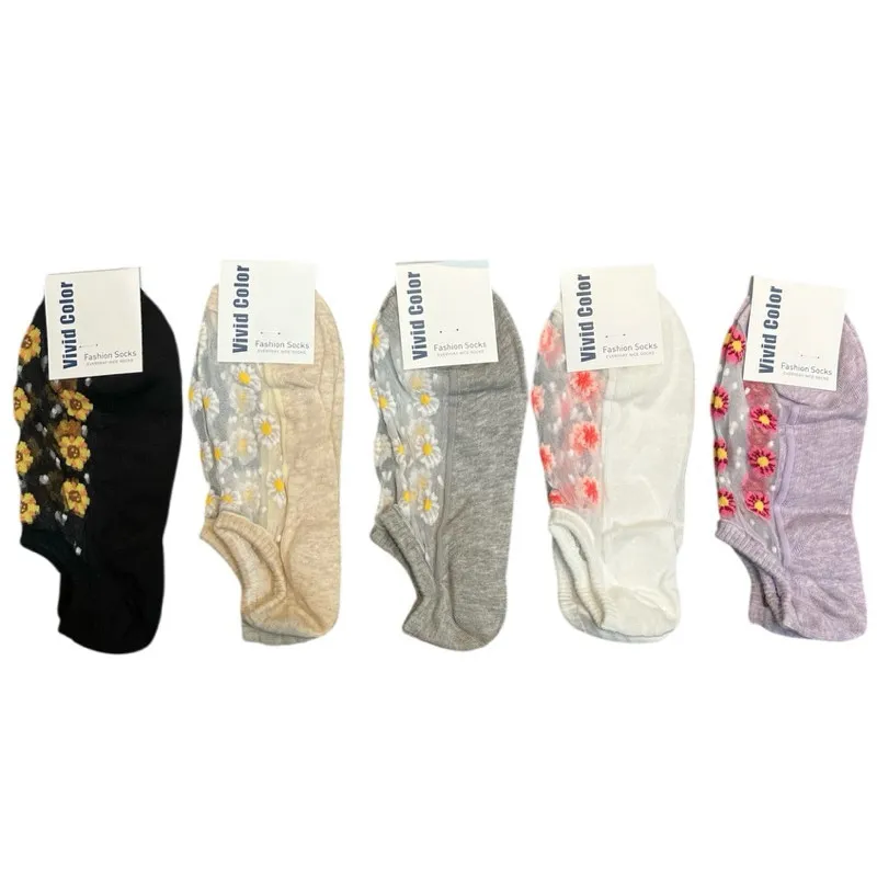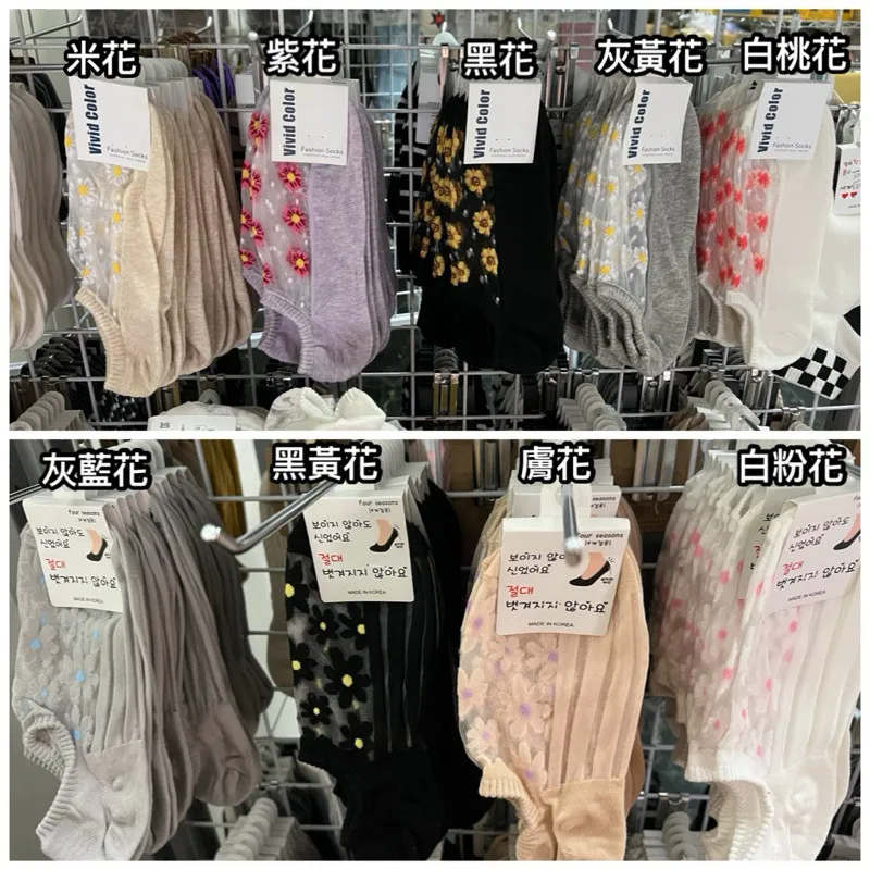 韓國製 透膚俏皮小花朵造型隱形襪 #22-26cm #透膚絲襪 #碎花透膚 #冰絲襪 #水晶襪