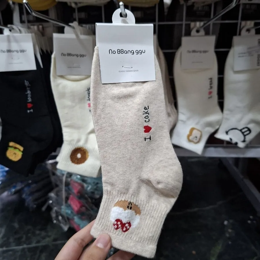 韓國製 可愛 簡約 吐司/甜甜圈/蛋糕/布丁/漢堡 #22-26cm #長襪 #中筒襪