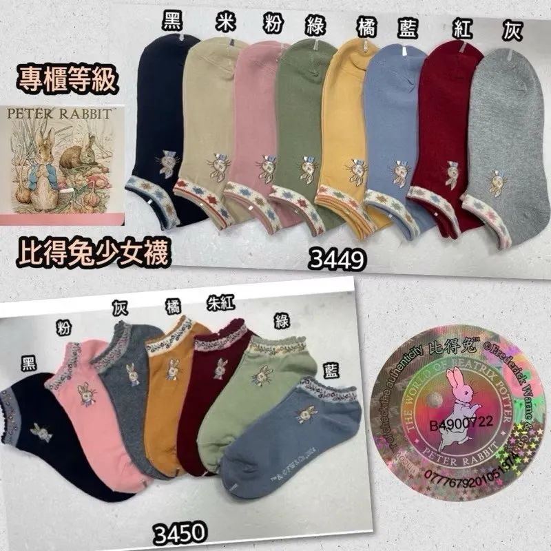 比得兔少女襪 #22-24cm #緹花細針羅口花邊#3449#3450