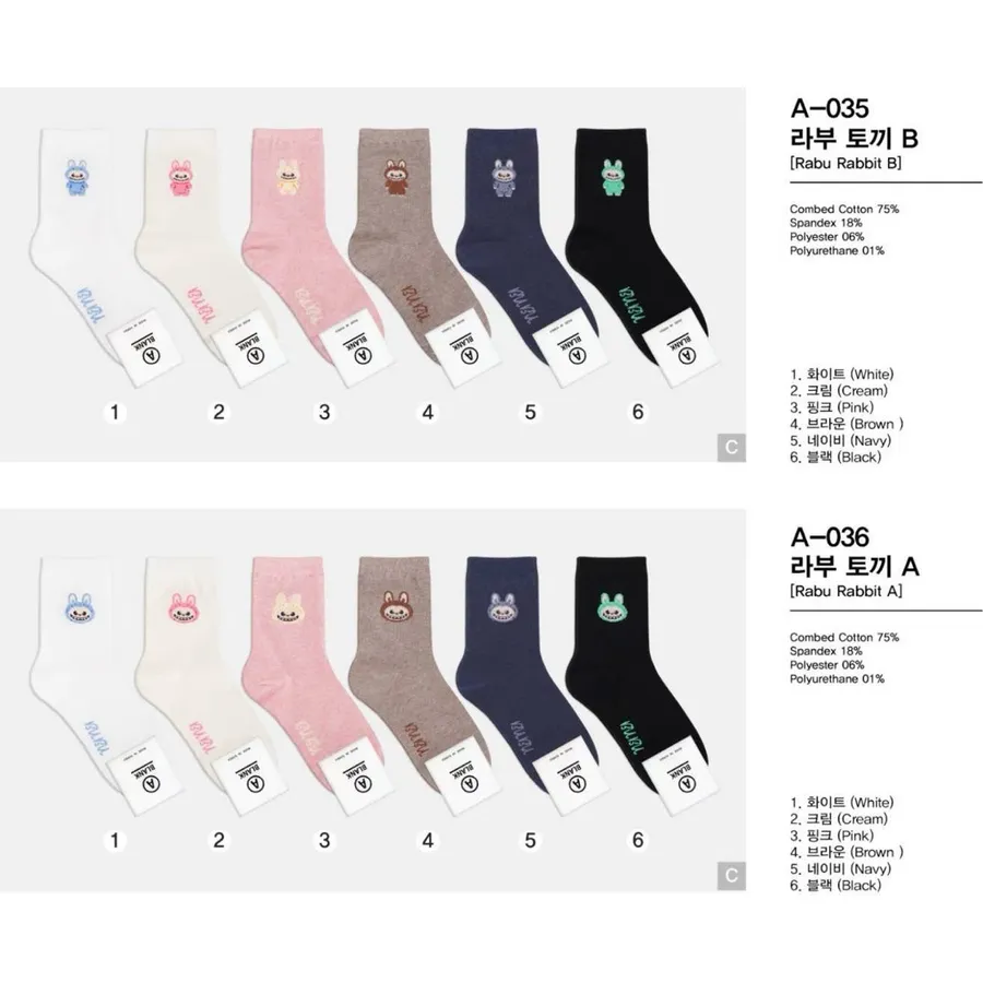 韓國製拉布布中筒棉襪 #22-26cm #男/女秋冬棉襪 #labubu