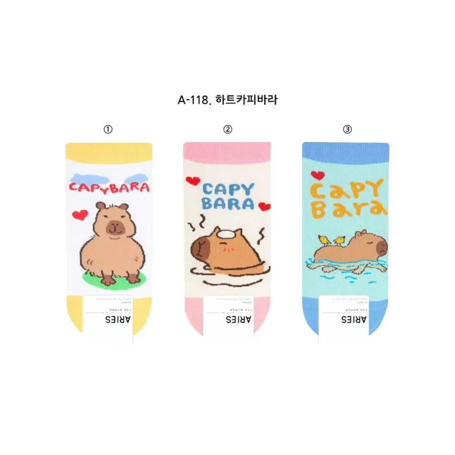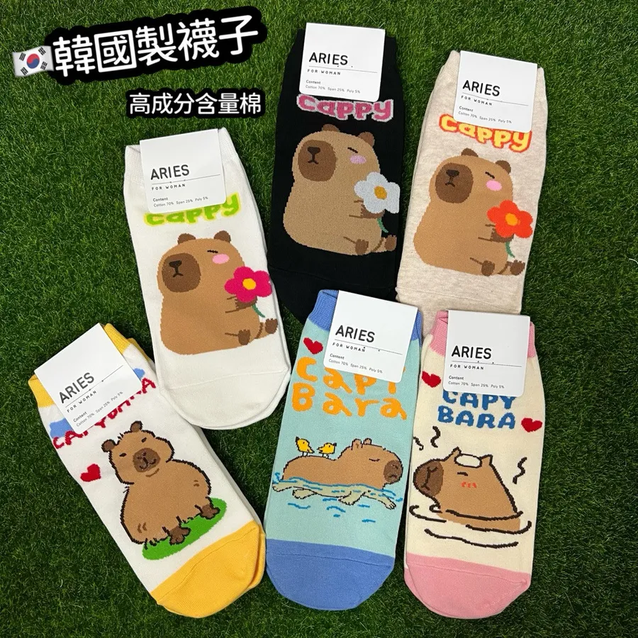 韓國製東大門卡皮巴拉短襪 #22-26cm #棉襪 #卡通水豚