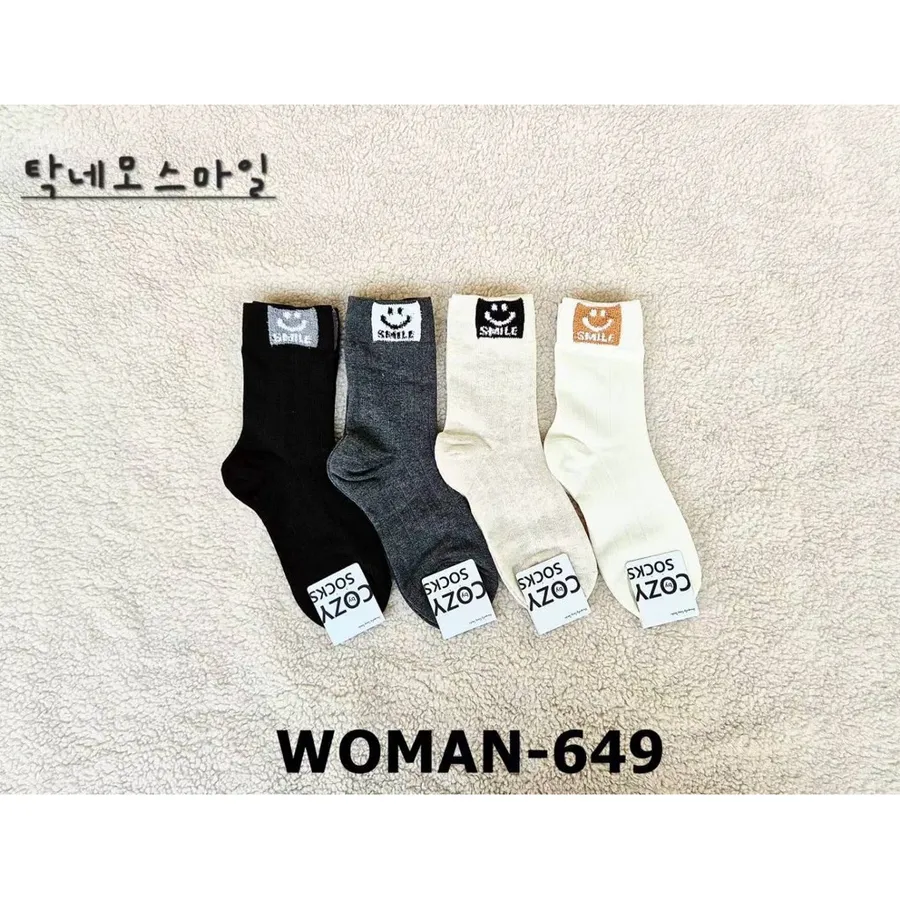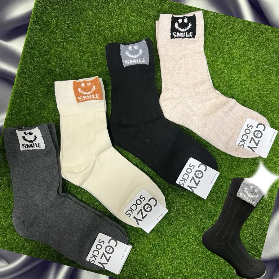 韓國製東大門方塊笑臉中筒襪 #22-26cm