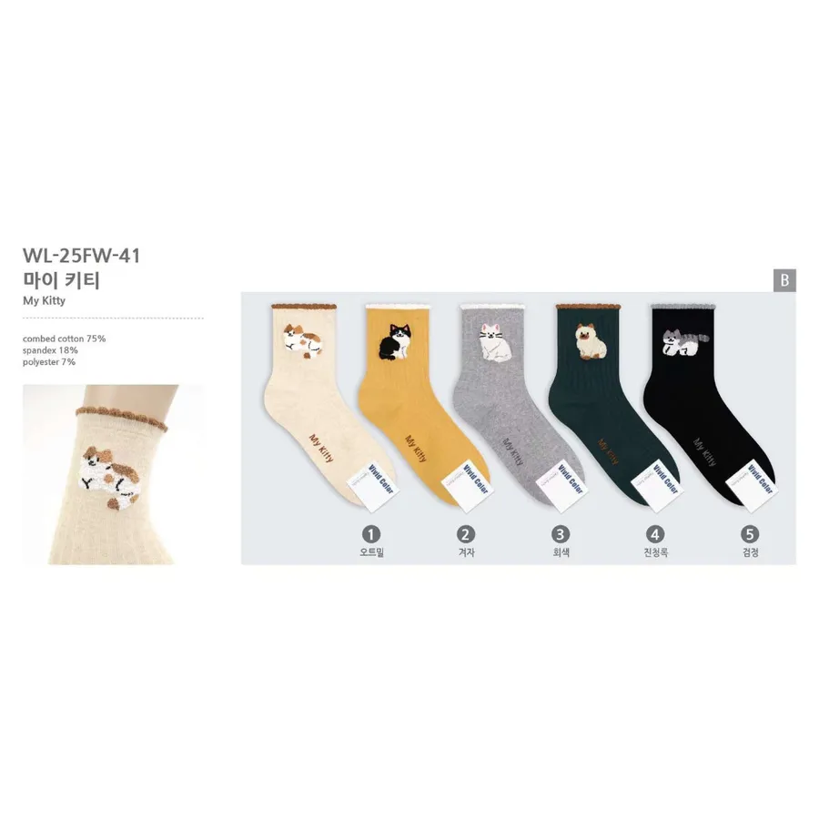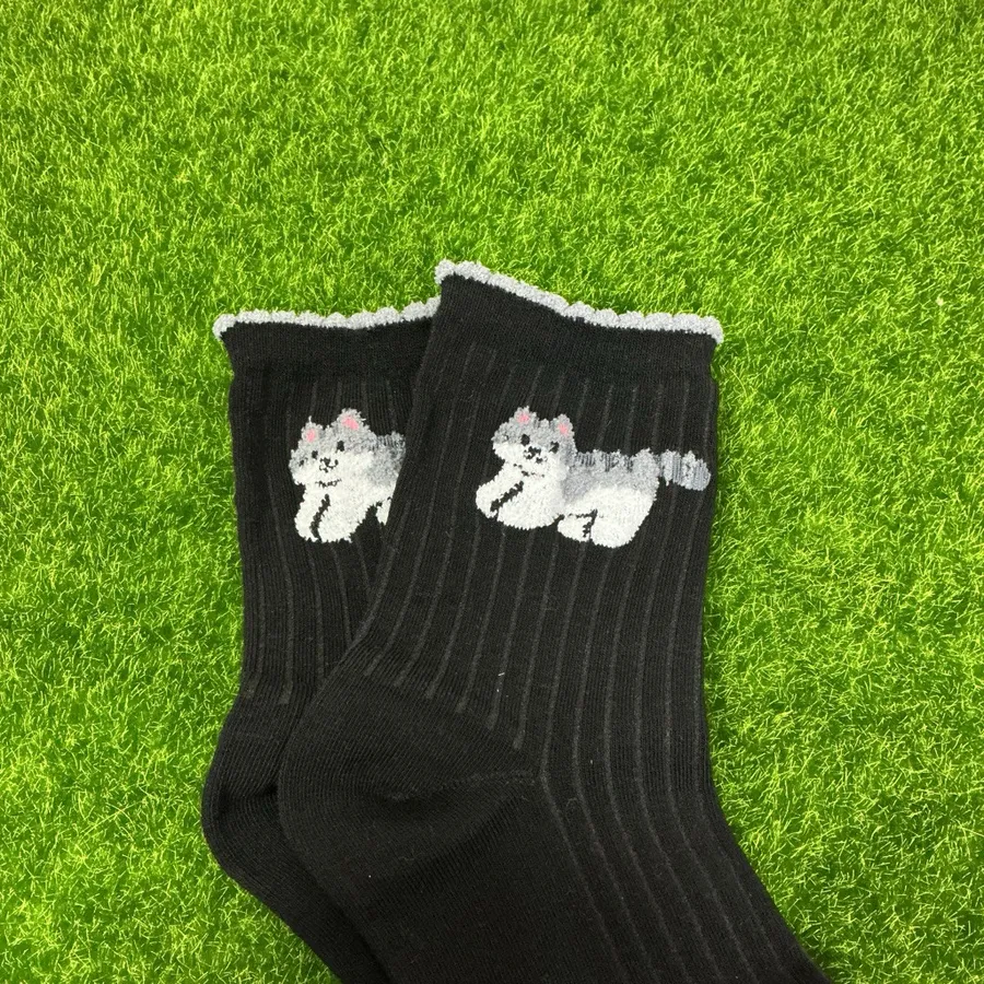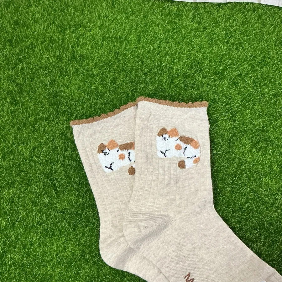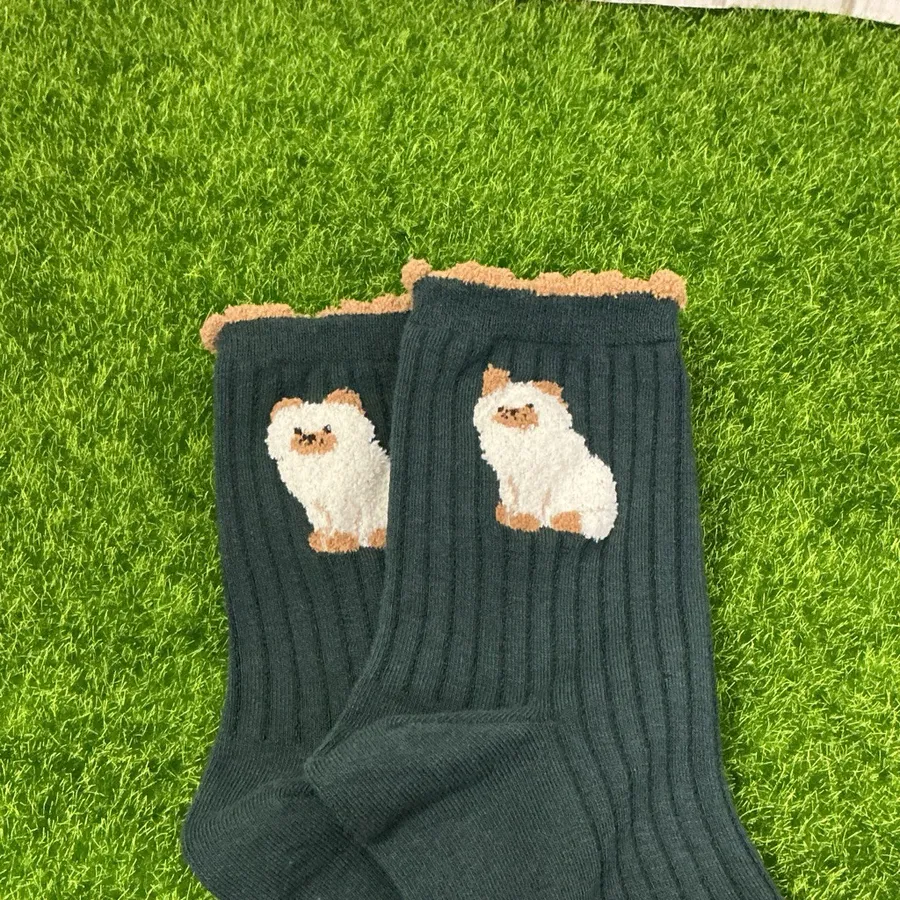 韓國製 貓咪毛毛滾邊中筒襪 #22-24cm