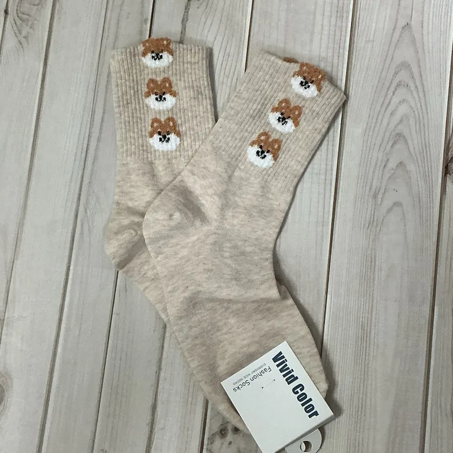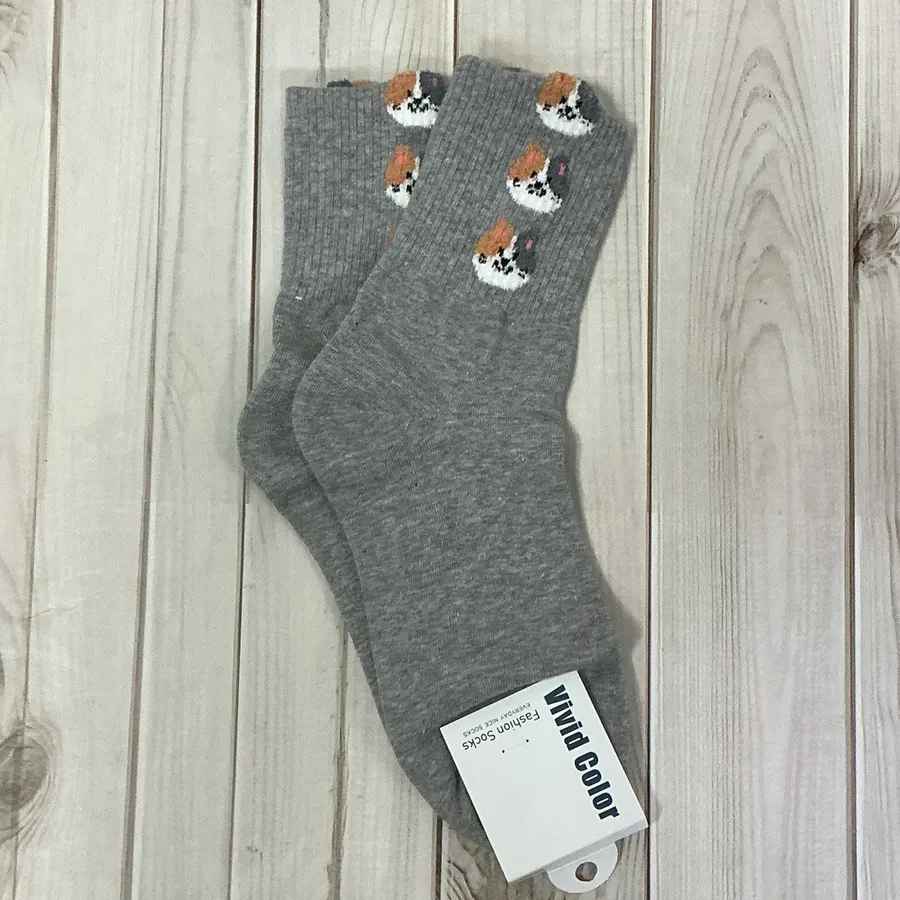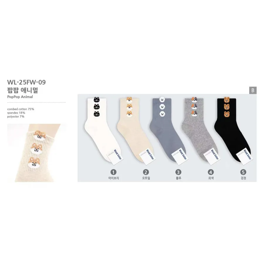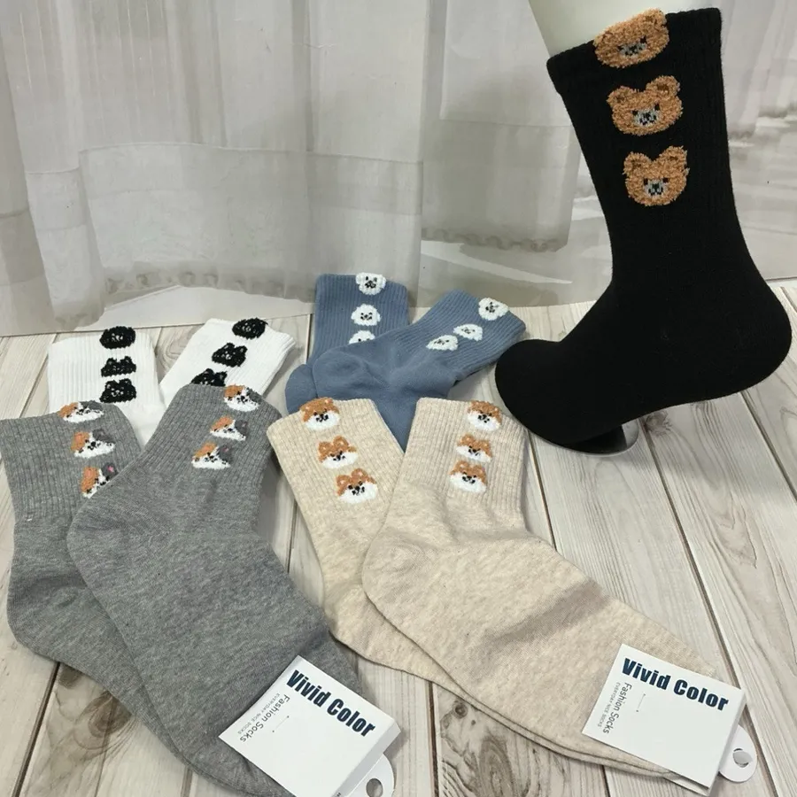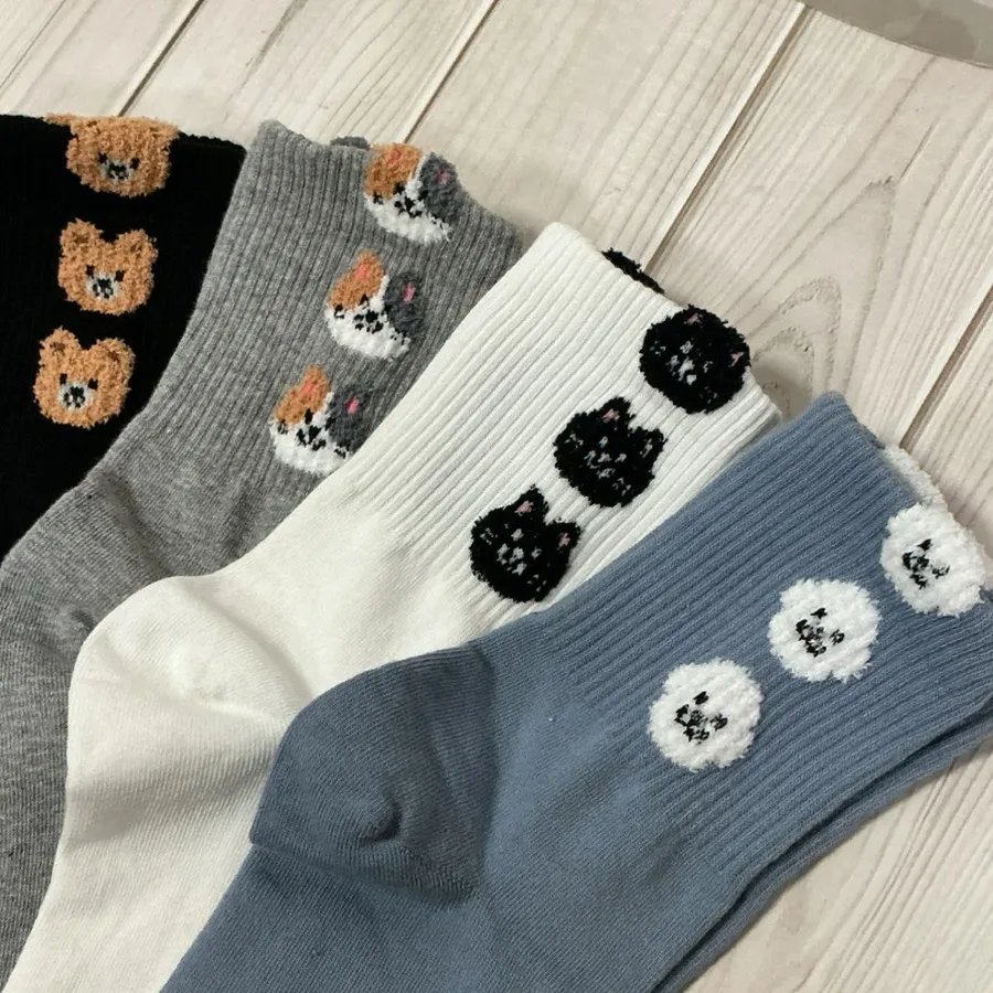 韓國製 可愛動物疊疊樂中筒襪 貓貓 熊熊 柴犬 比熊 #22-26cm
