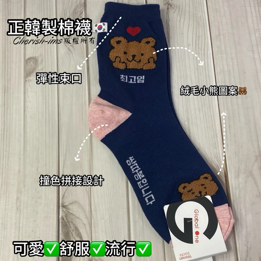 韓國製絨毛圖案中筒襪 #22-26cm #小熊🐻 #熊熊