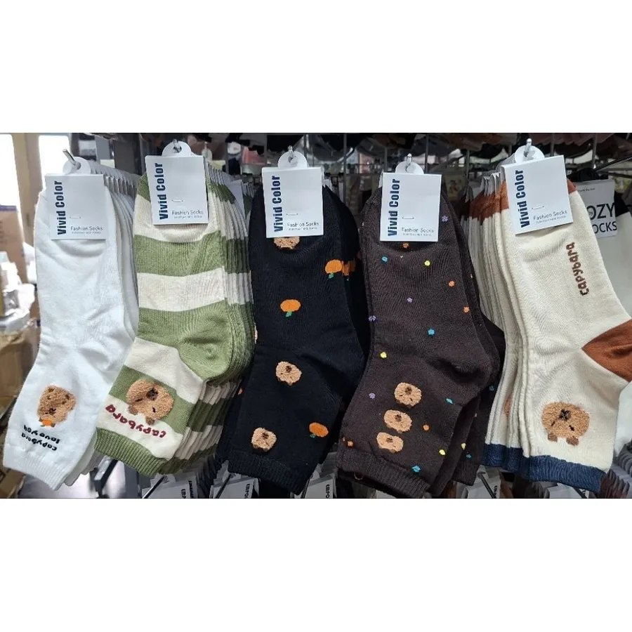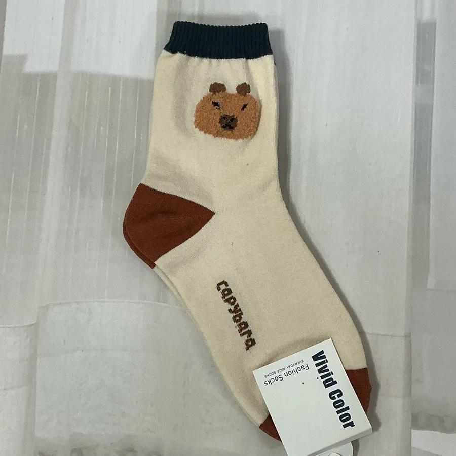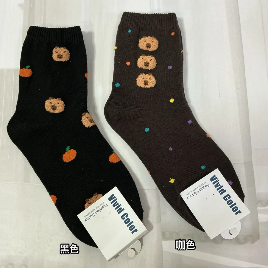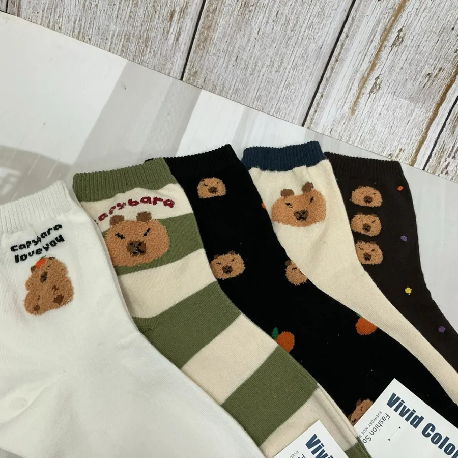 韓國製卡皮巴拉毛絨圖案 學生襪 #22-26cm