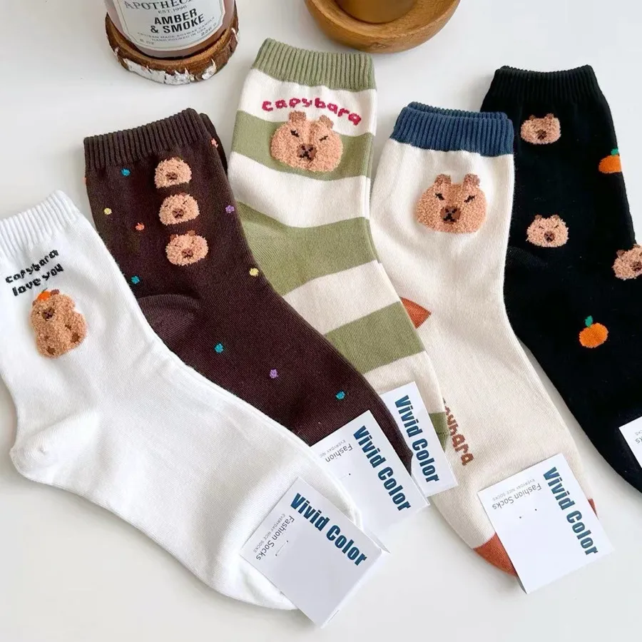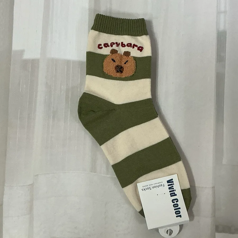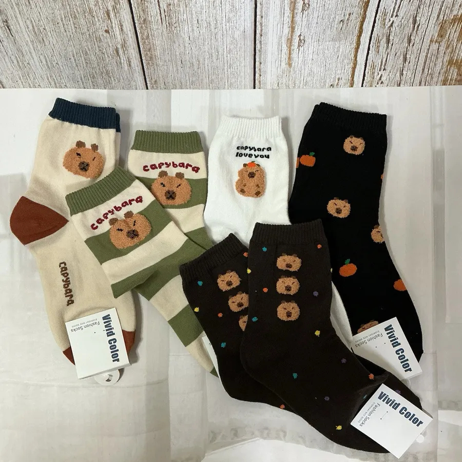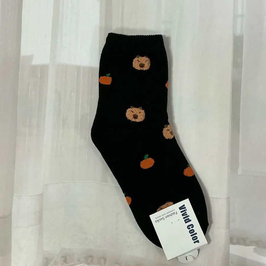 韓國製卡皮巴拉毛絨圖案 學生襪 #22-26cm