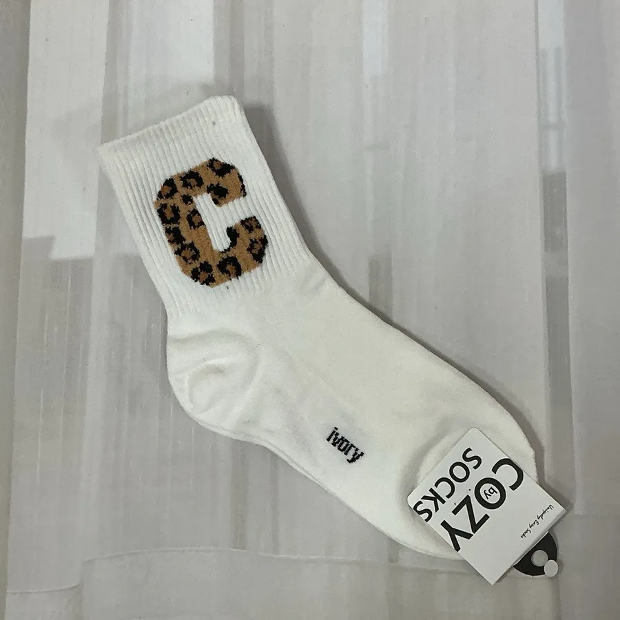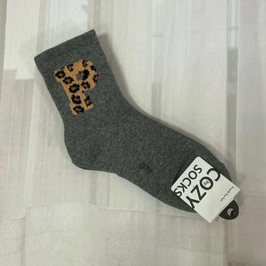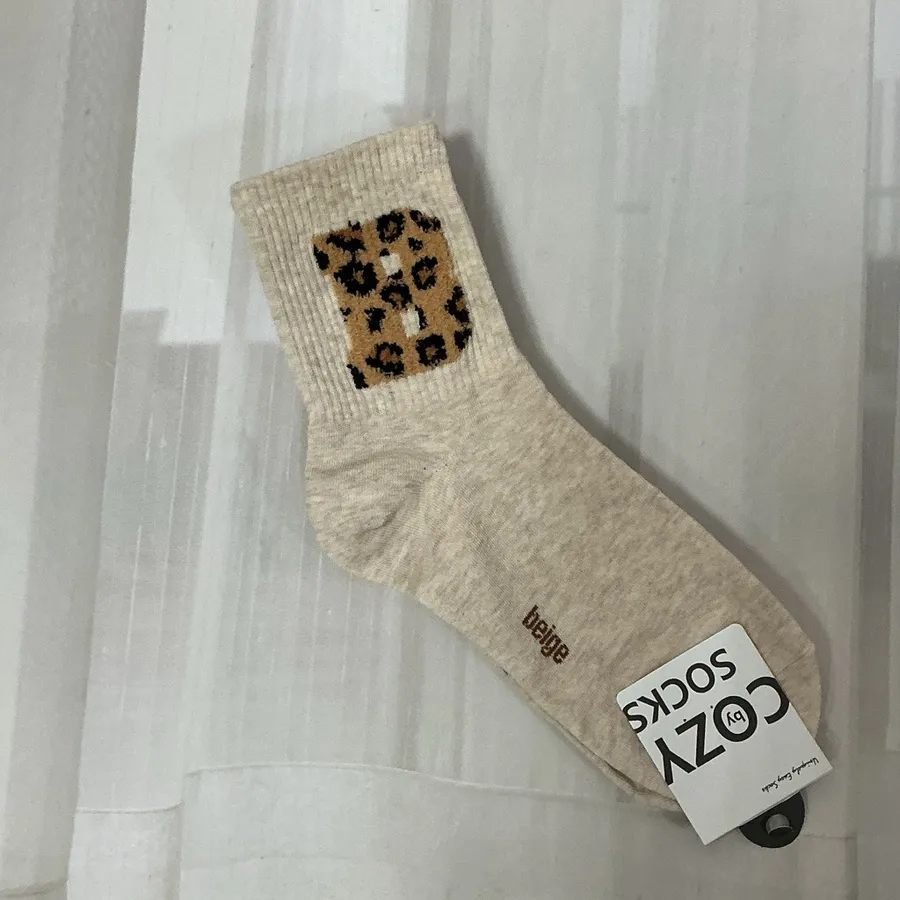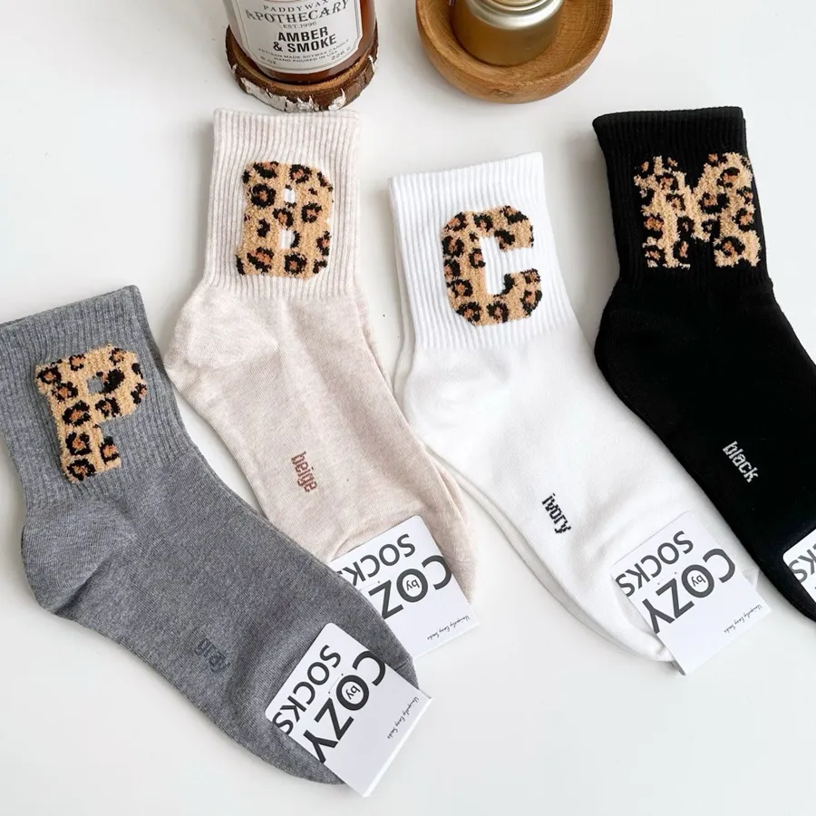 韓國製 豹紋絨毛字母 女短襪 #22-26cm