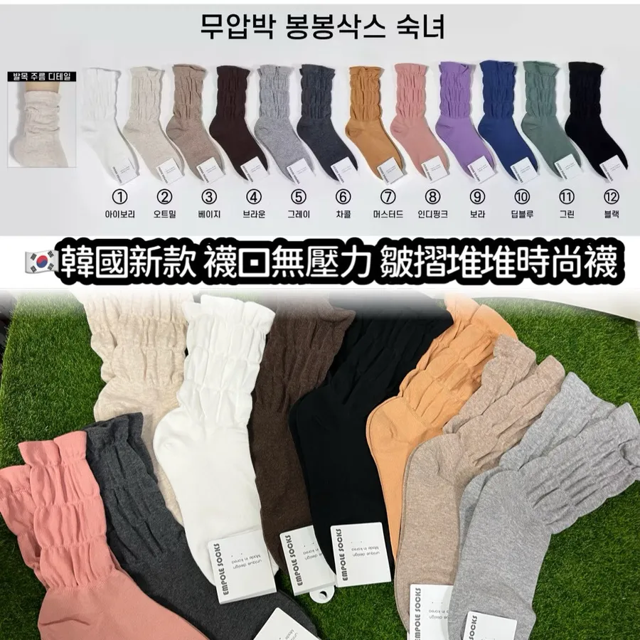 韓國製 百搭素色泡泡中筒襪子 #22-26cm #堆堆襪