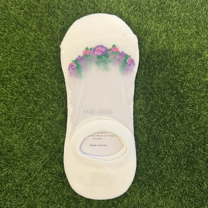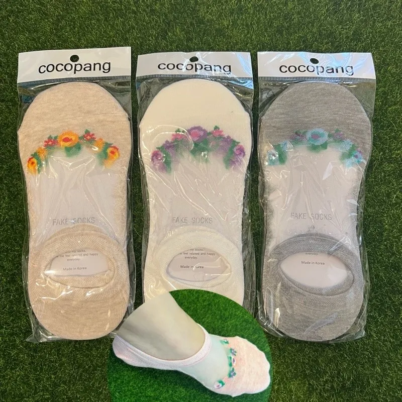 韓國製 花朵素色襪隱形襪 #22-26cm #後跟止滑設計 #後跟止滑膠條