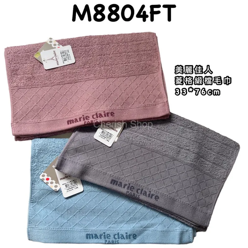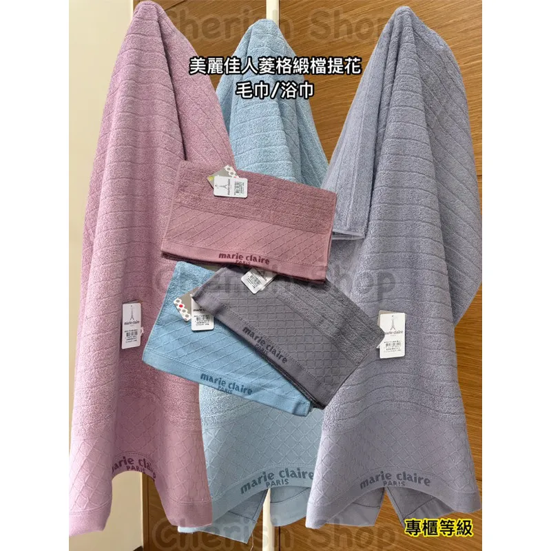 台灣製菱格緹花緞檔 毛巾 浴巾 Marie Claire 美麗佳人 #百貨專櫃#8804