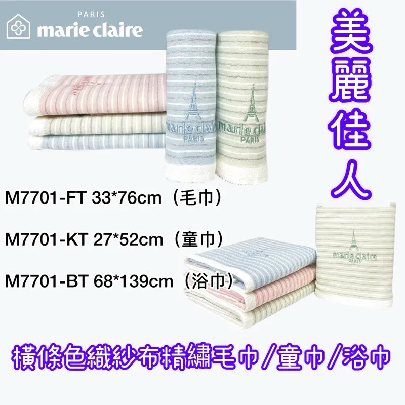 美麗佳人橫條色織紗布精繡毛巾 童巾 浴巾 #7701