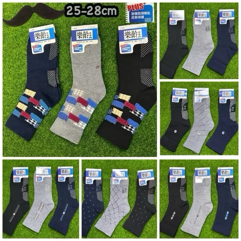 夏日薄款止滑寬口樂齡襪 #台灣製#男襪#樂齡方格#一盾牌#三菱形#長造形#菱形紋路#素面#25-28cm