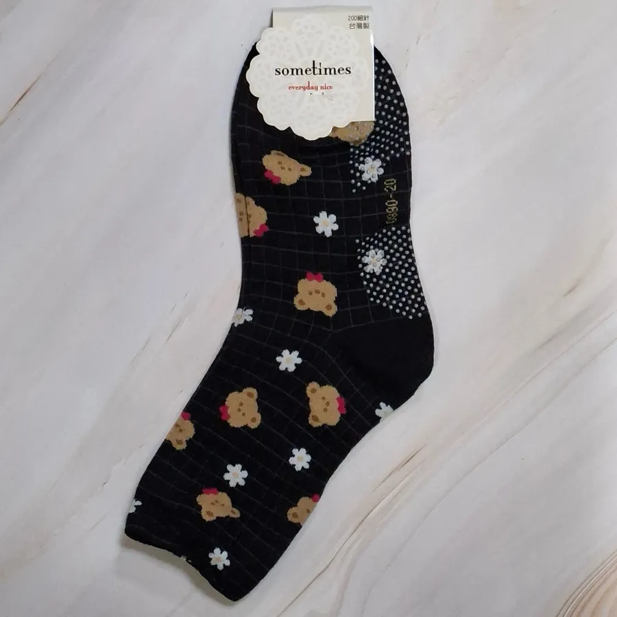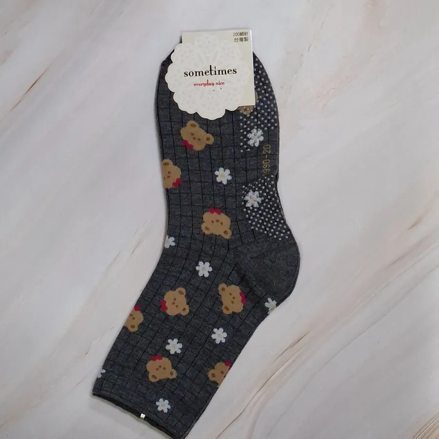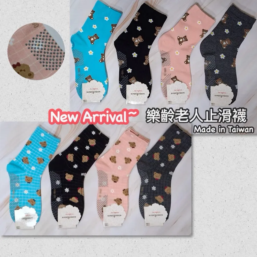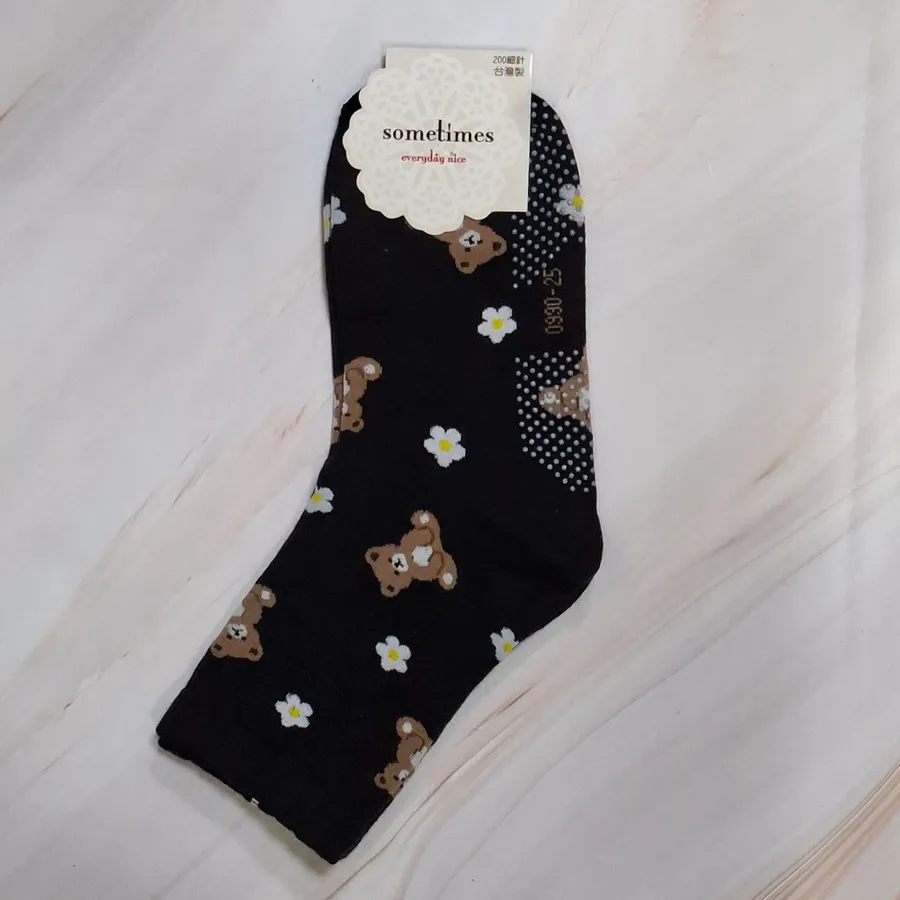 純棉止滑樂齡襪 #台灣製#格子熊熊#小花熊熊#22-26cm