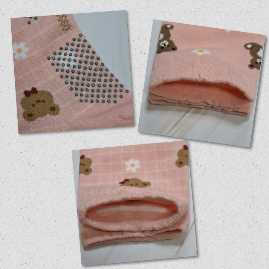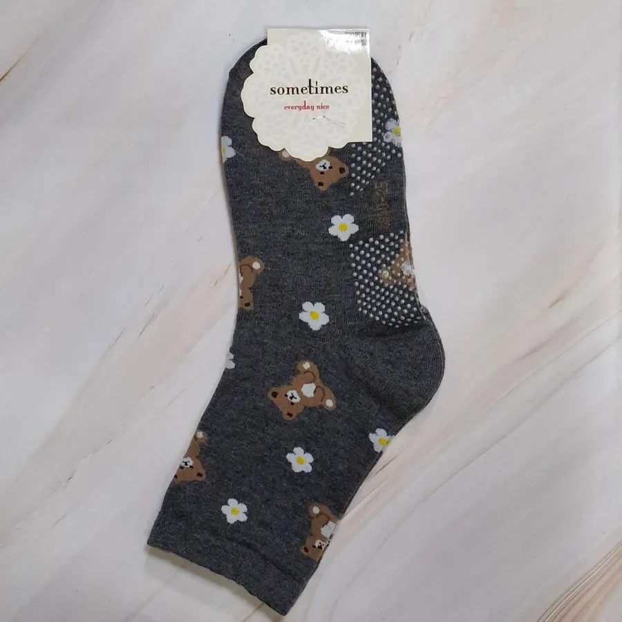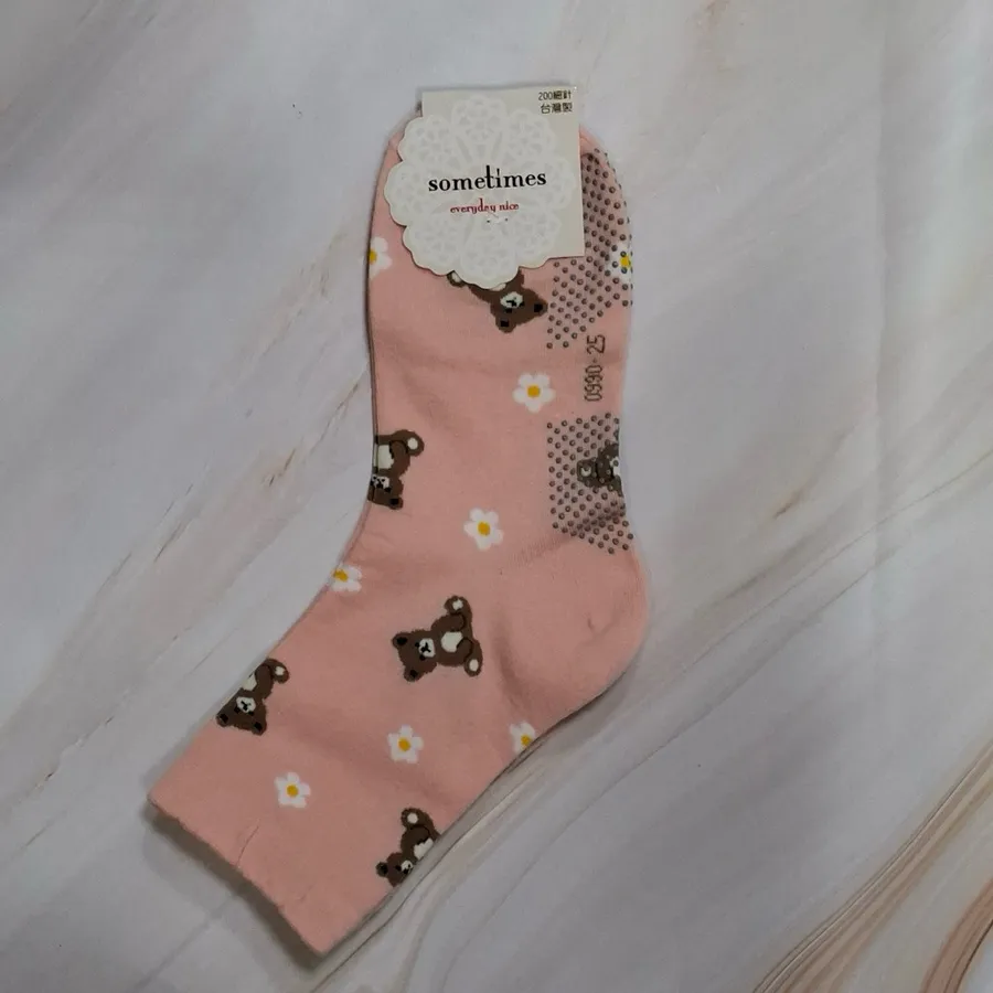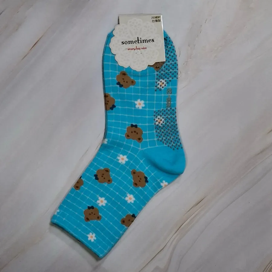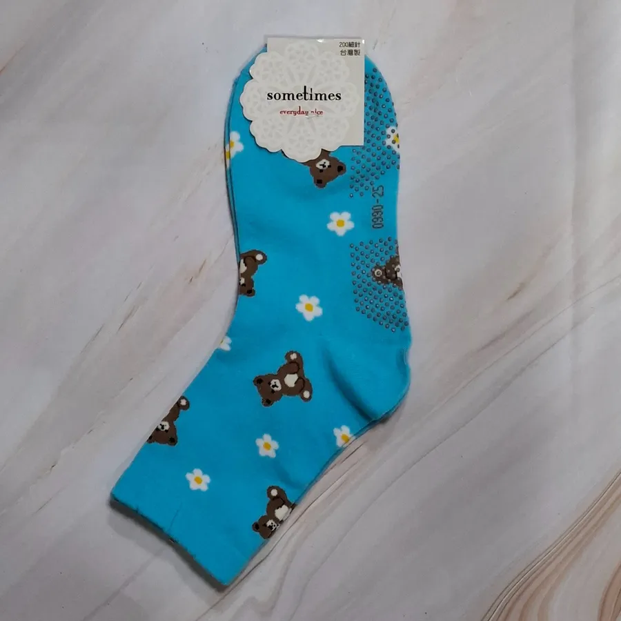 純棉止滑樂齡襪 #台灣製#格子熊熊#小花熊熊#22-26cm