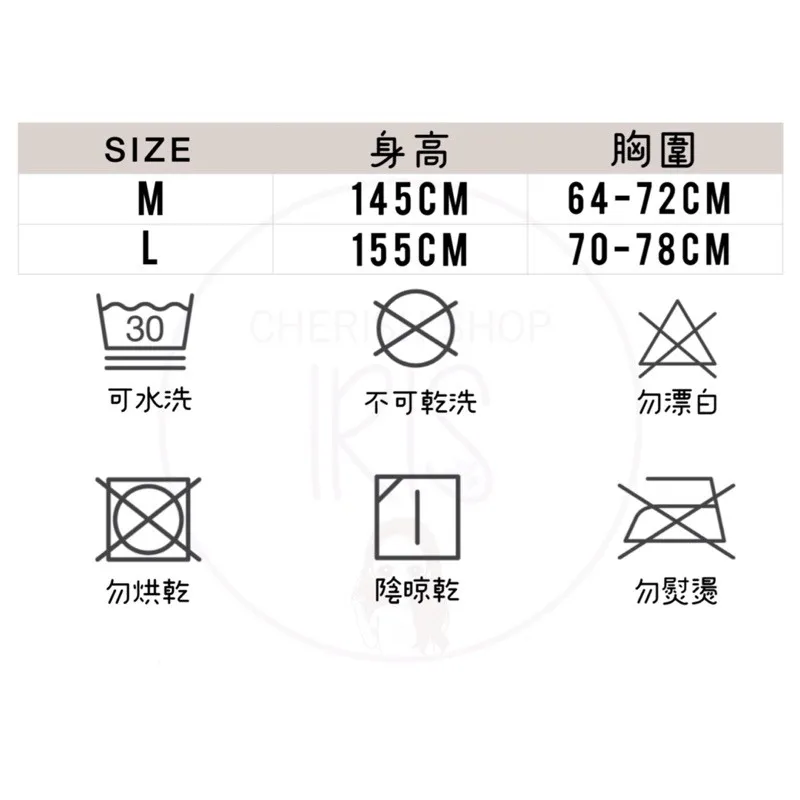M:身高145公分/胸圍64-72公分