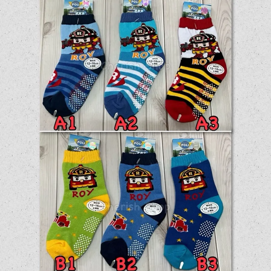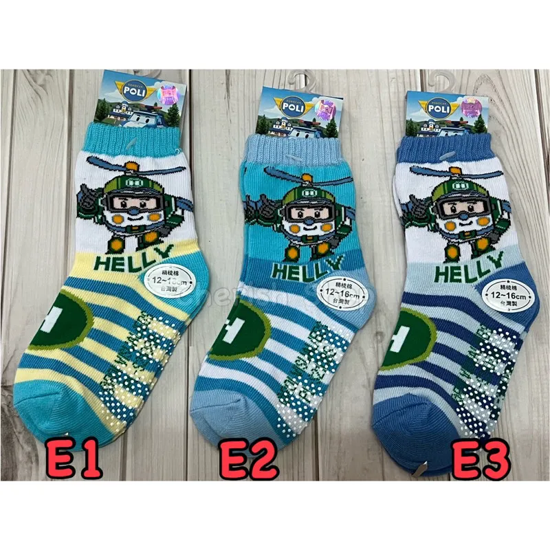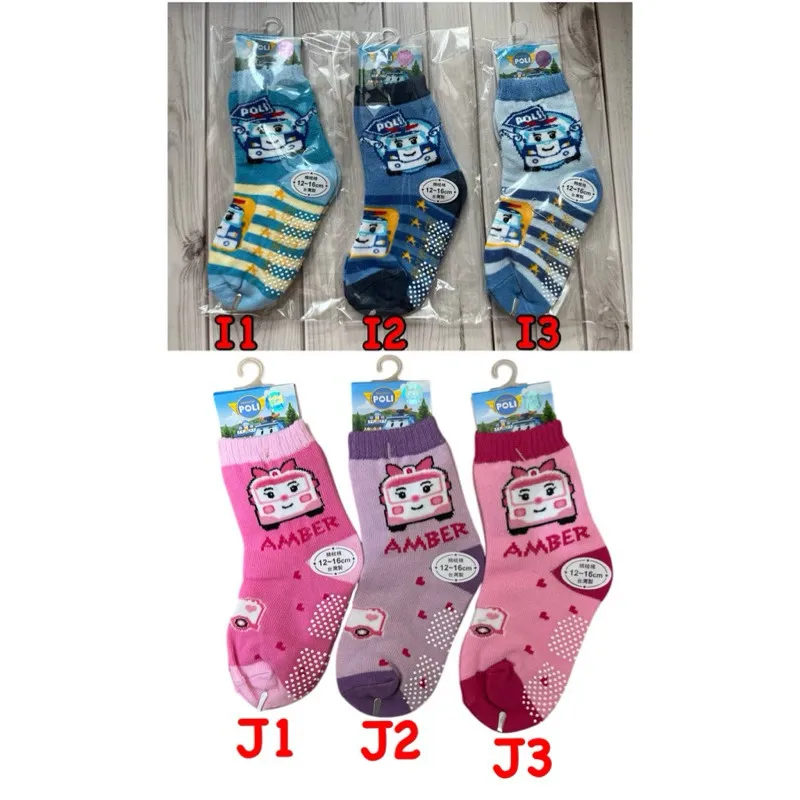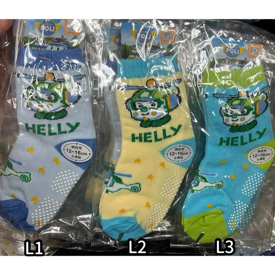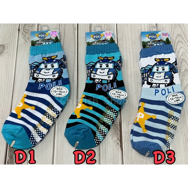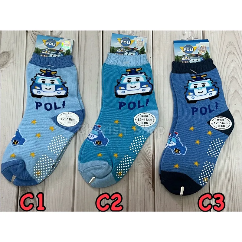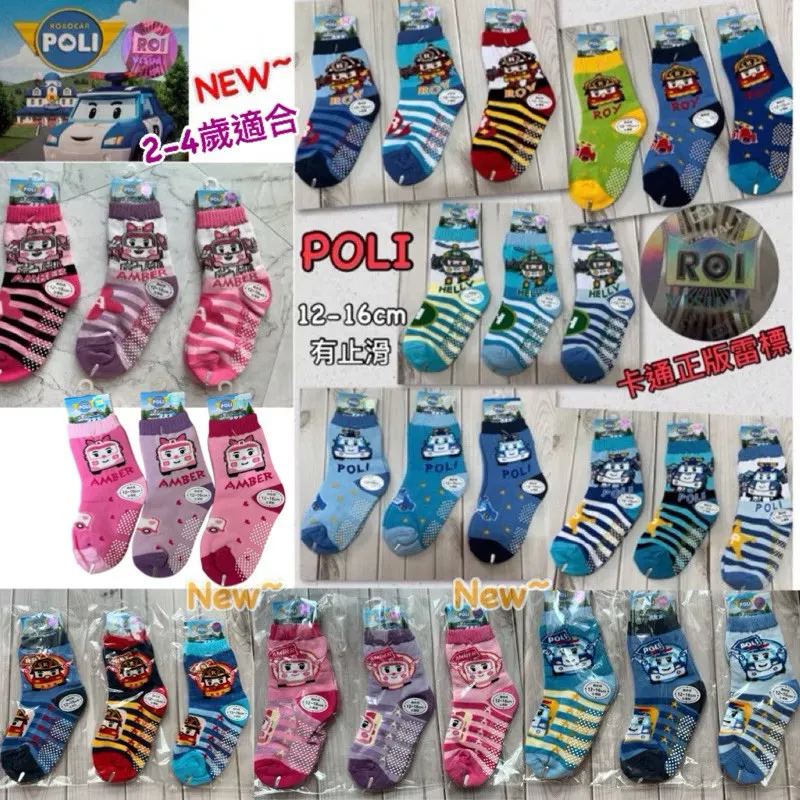 台灣製造 正版卡通雷標 POLI兒童止滑襪 #12-16cm #有止滑