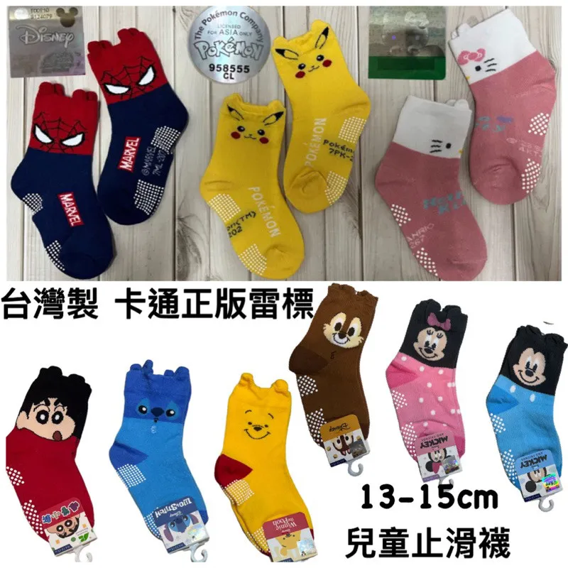 台灣製正版雷標兒童止滑襪 蜘蛛人 皮卡丘 三麗鷗 凱蒂貓 #13-15cm