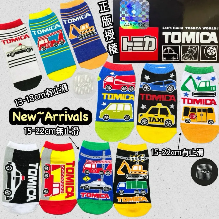 #童襪#正版授權#TOMICA#台灣製#兒童止滑襪#多美汽車#雷射標籤