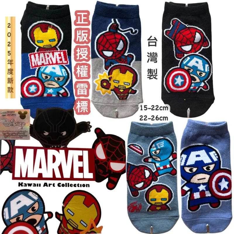 正版雷標卡通襪 復仇者聯盟 美國隊長 蝙蝠俠 鋼鐵人 蜘蛛人 黑豹 兒童直版襪 #15-22cm #22-26cm