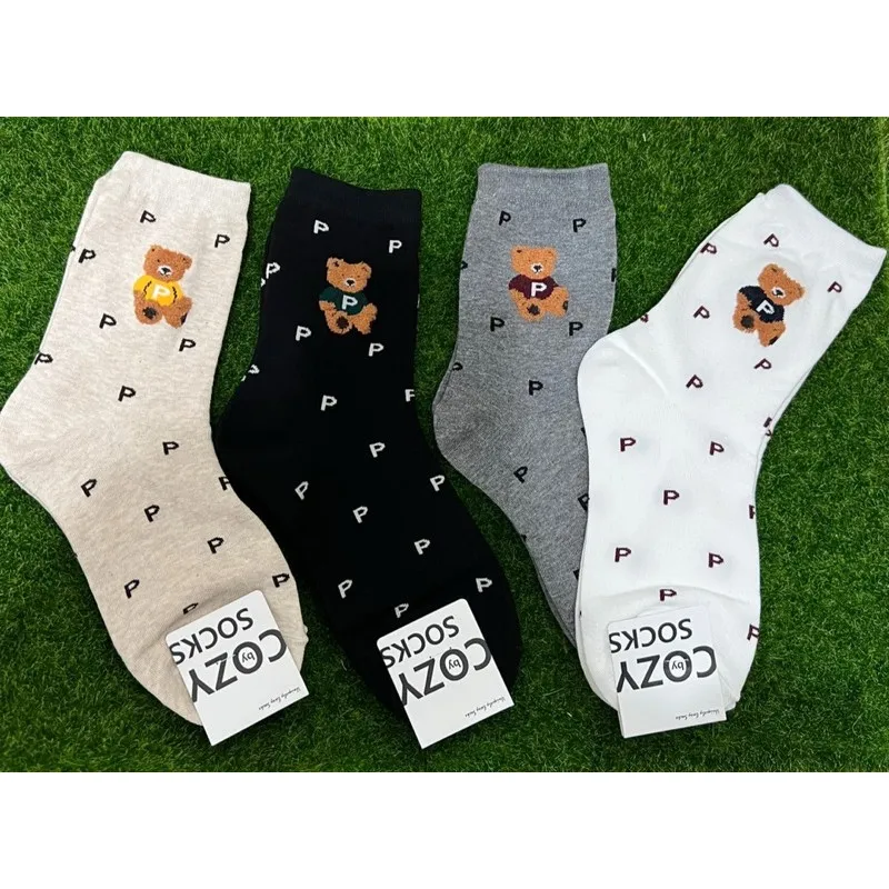 韓國製 小熊 字母P 卡通少女襪 #22-25cm #棉襪