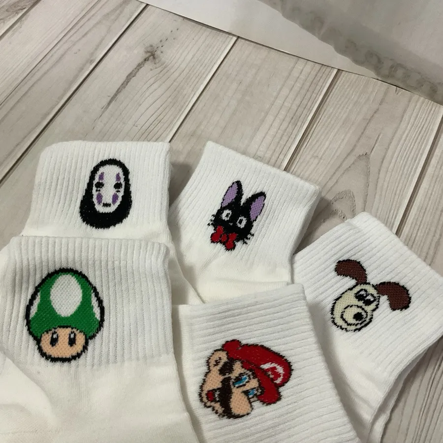 韓國製宮崎駿中筒襪 #22-26cm #無臉男#瑪利歐#香菇#魔女宅急便#吉吉#格羅米