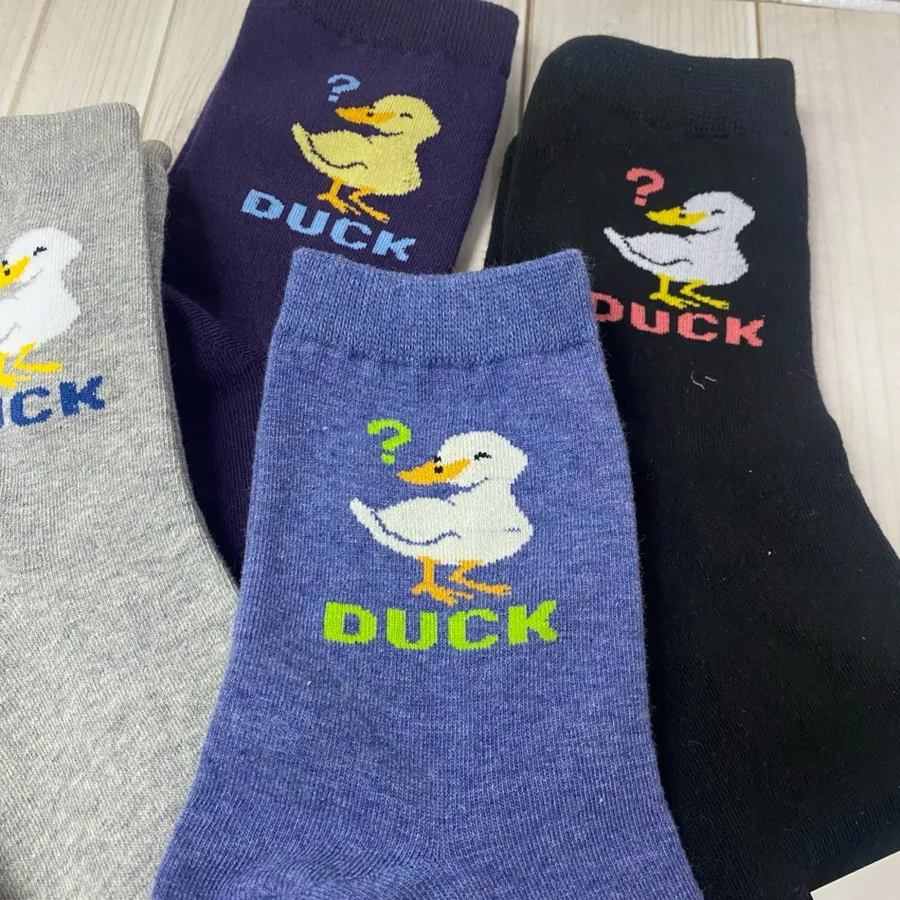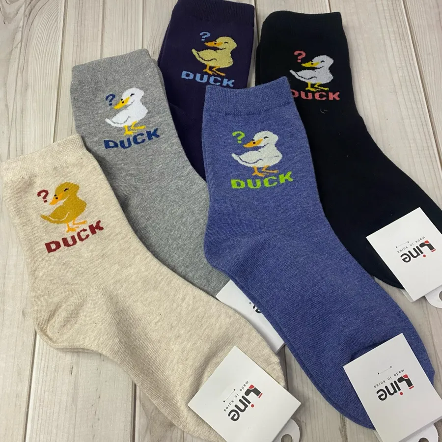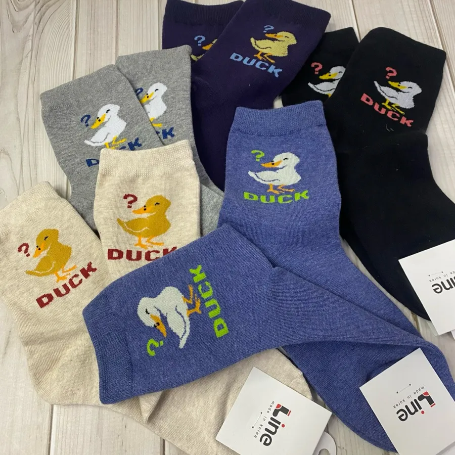 韓國製 東大門中筒襪 長襪 #23-25cm #棉襪 #鴨子 #問號鴨子