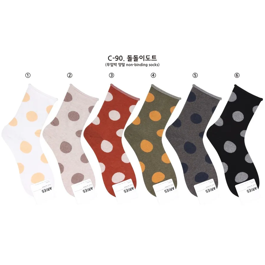 韓國製 東大門復古卷邊圓點 中筒女棉襪 #23-25cm