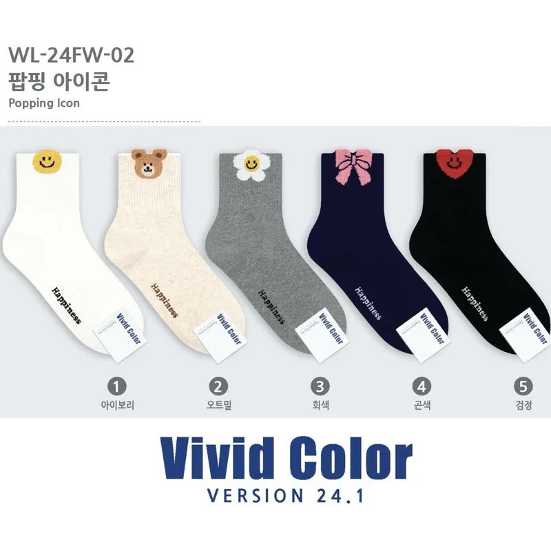 韓國製 笑臉/小熊/花朵/蝴蝶結/愛心中筒襪 #22-25cm #長襪 #棉襪 #學生襪