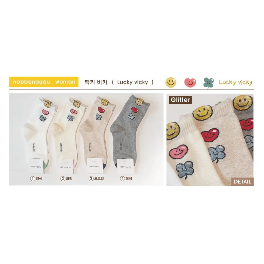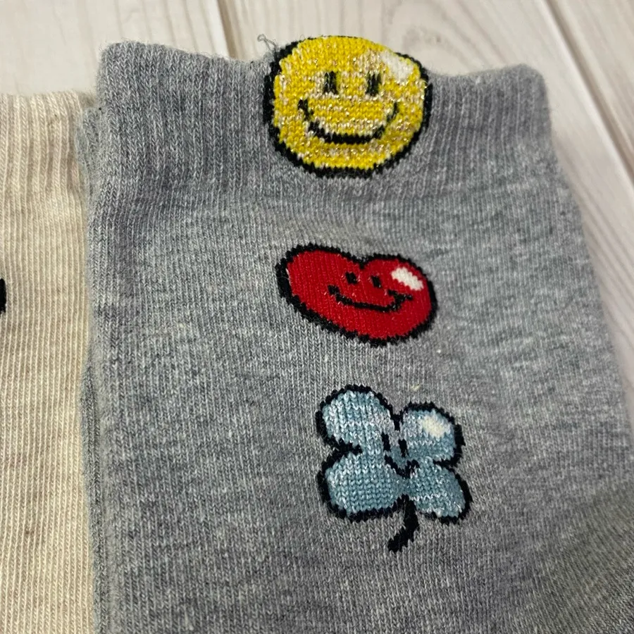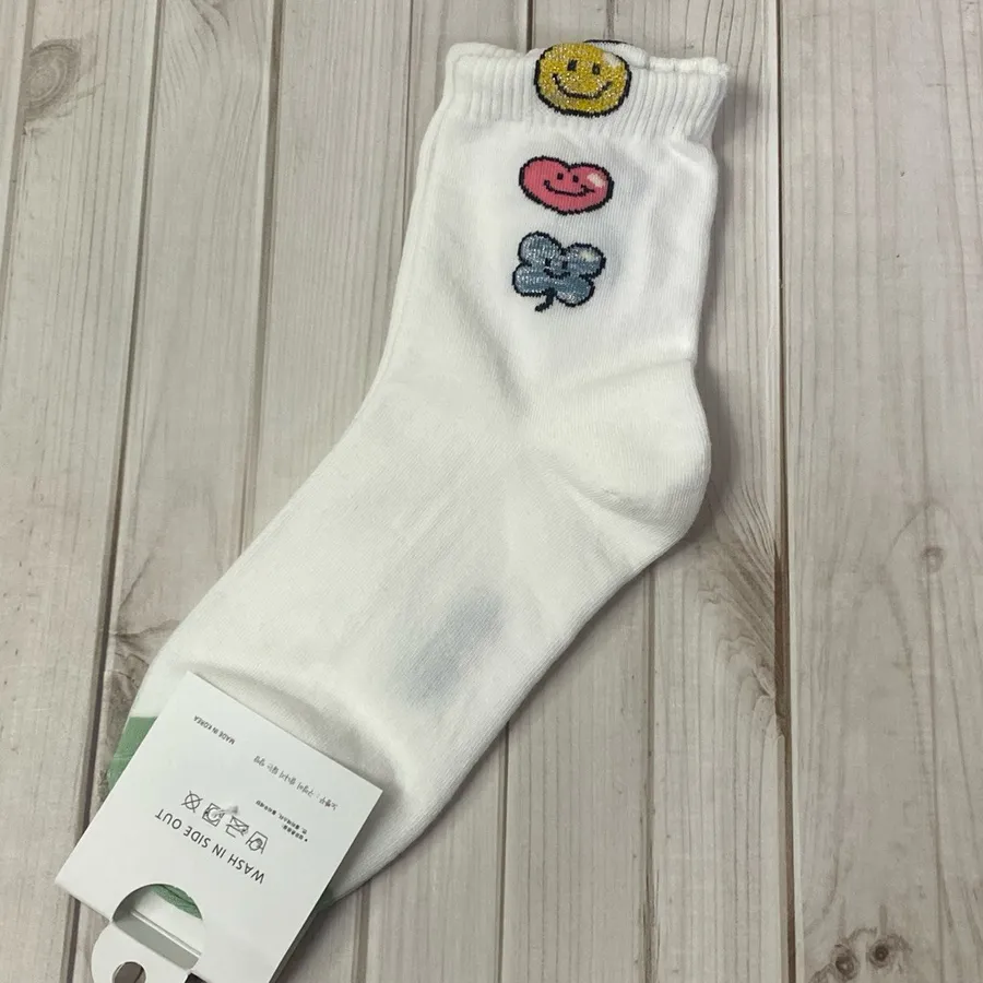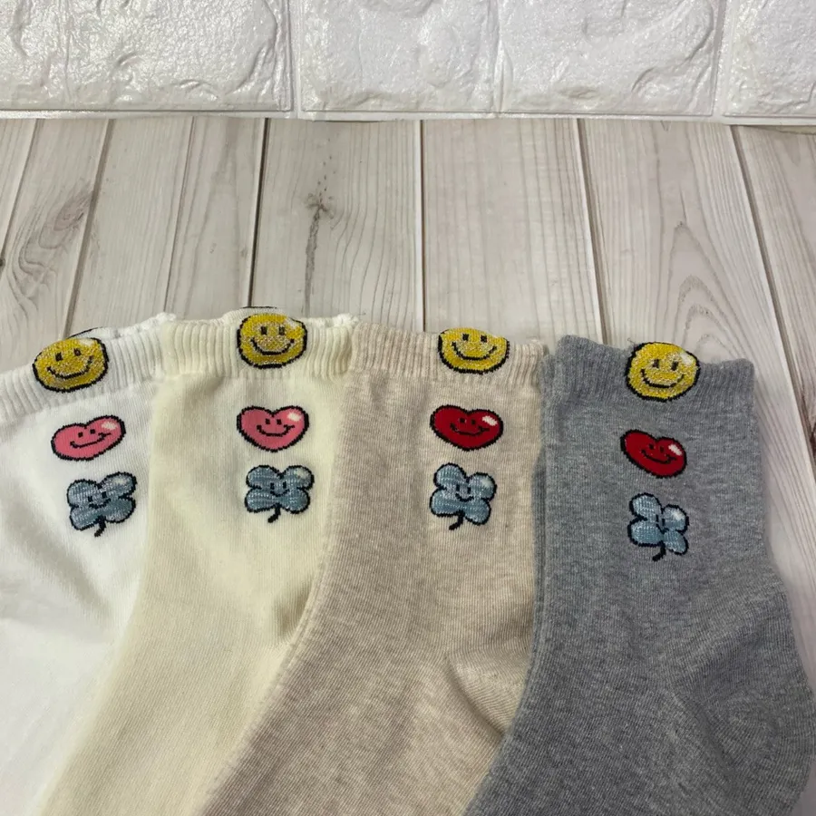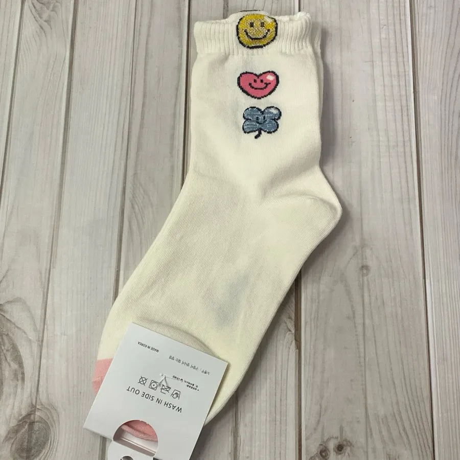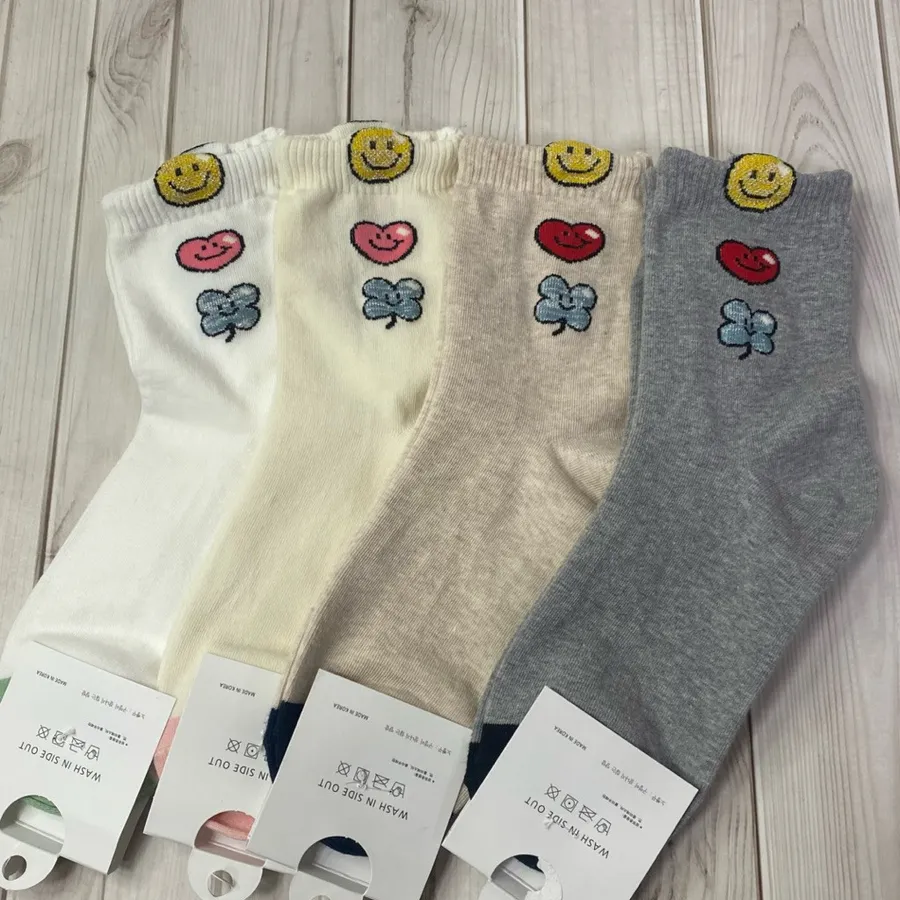 韓國製中筒棉襪 #22-26cm#四葉草 #愛心 #笑臉 #幸運草 #nobbangggu