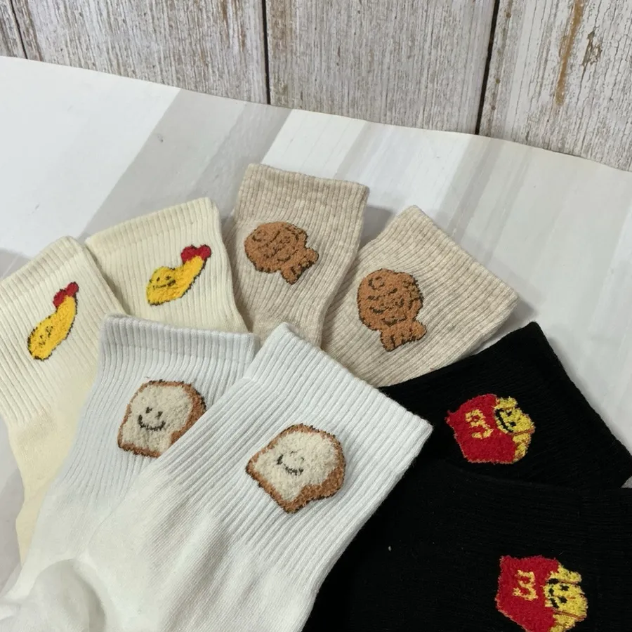 韓國製 毛絨卡通美食造型襪 #22-26cm #炸蝦#薯條#吐司#鯛魚燒