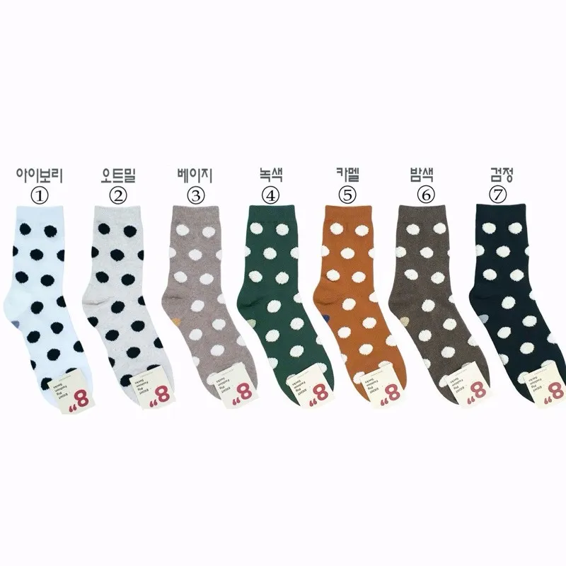 韓國襪子女襪彩色小波點短襪 圓點中筒襪 #23-25cm