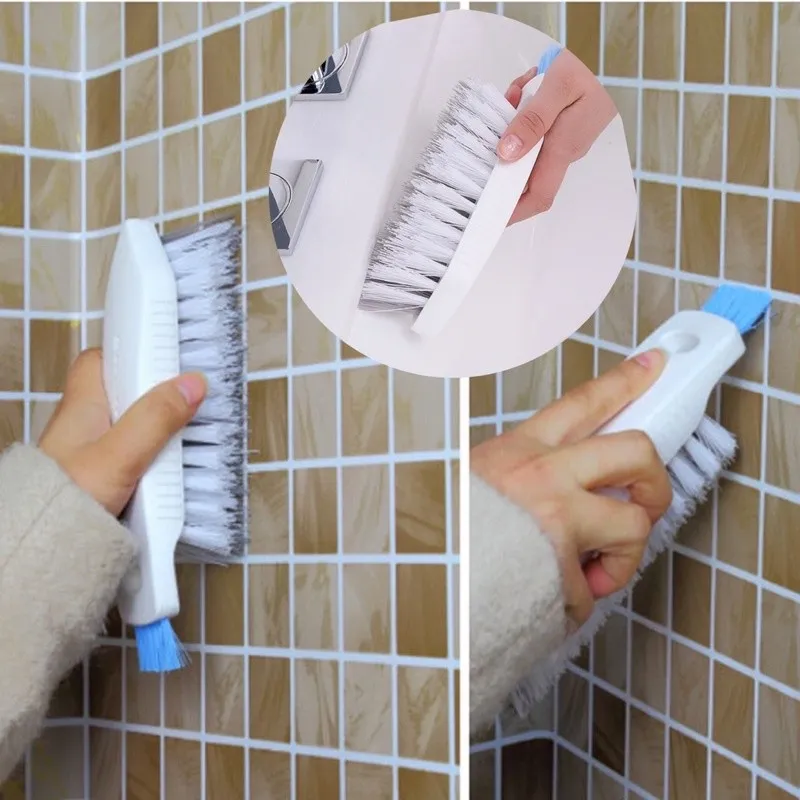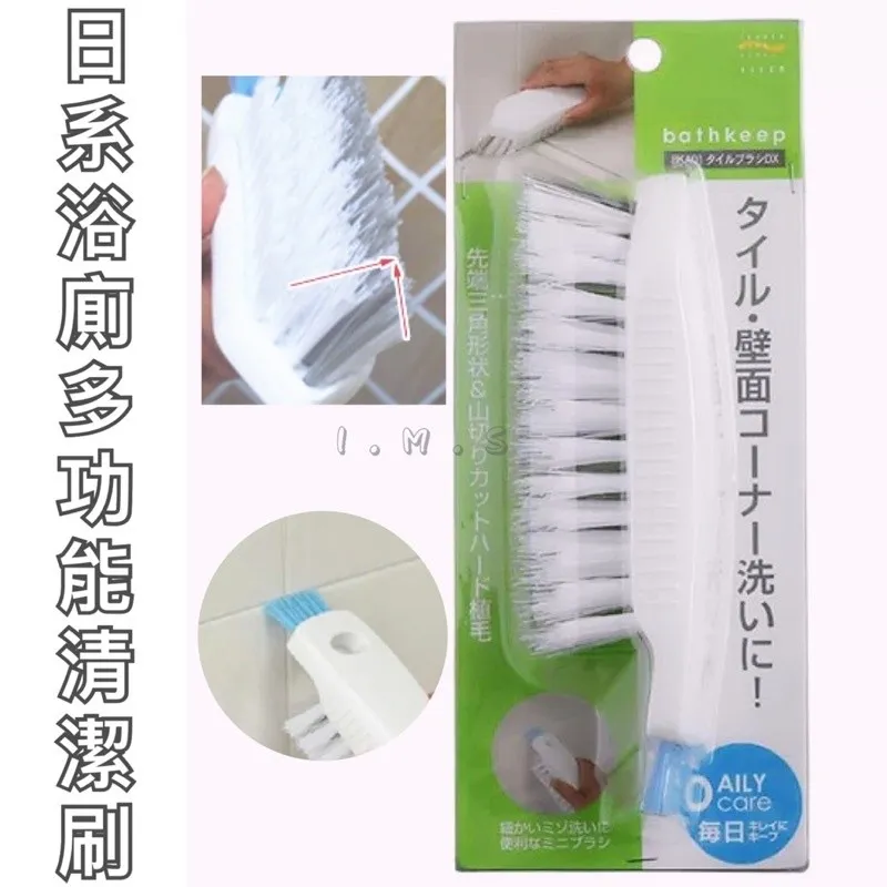 手握抦處凹凸防滑設計,增加摩擦力,獨特三角刷毛設計,容易清潔牆角,外加藍色小刷毛設計,方便使用於瓷磚細縫處,另外主體掛孔設計,方便懸掛收納。