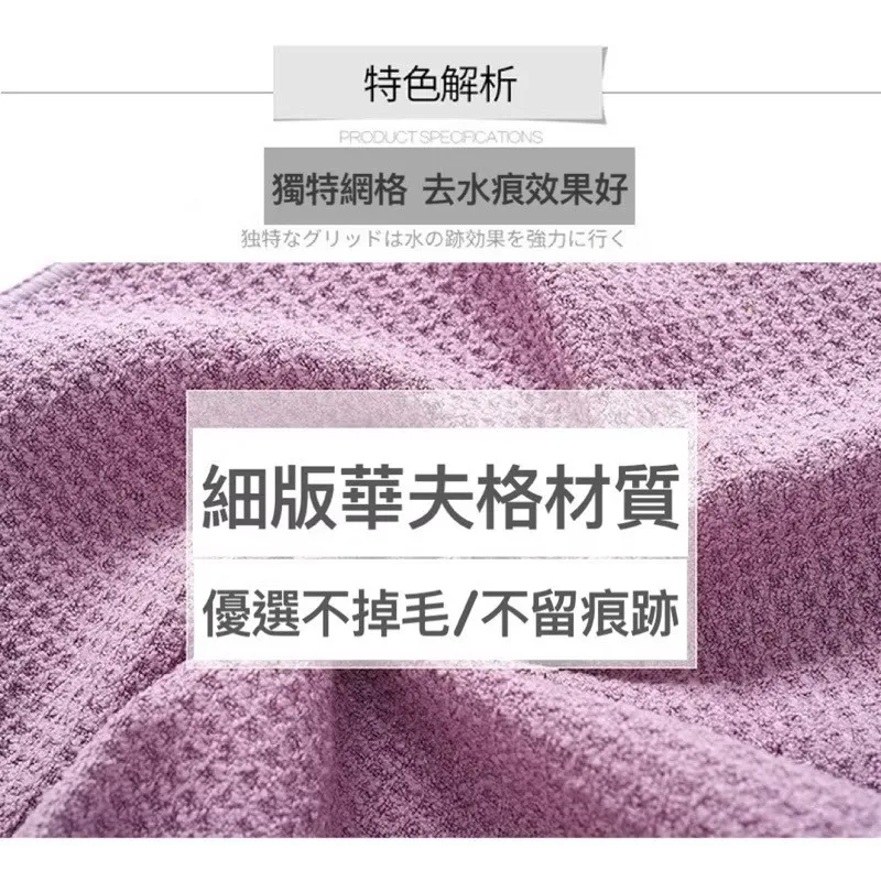 特別針對擦拭光滑的玻璃而開發的超細纖維布,表面採用複雜費工的華夫格編織法,將每根細小的纖維先編織成球狀結構,再織成華夫格的紋路。